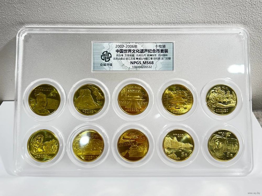 Китай 5 юань, 2002-2006 Всемирное наследие ЮНЕСКО; ПОЛНЫЙ КОМПЛЕКТ!!! В СЛАБЕ! ДЕШЕВО!