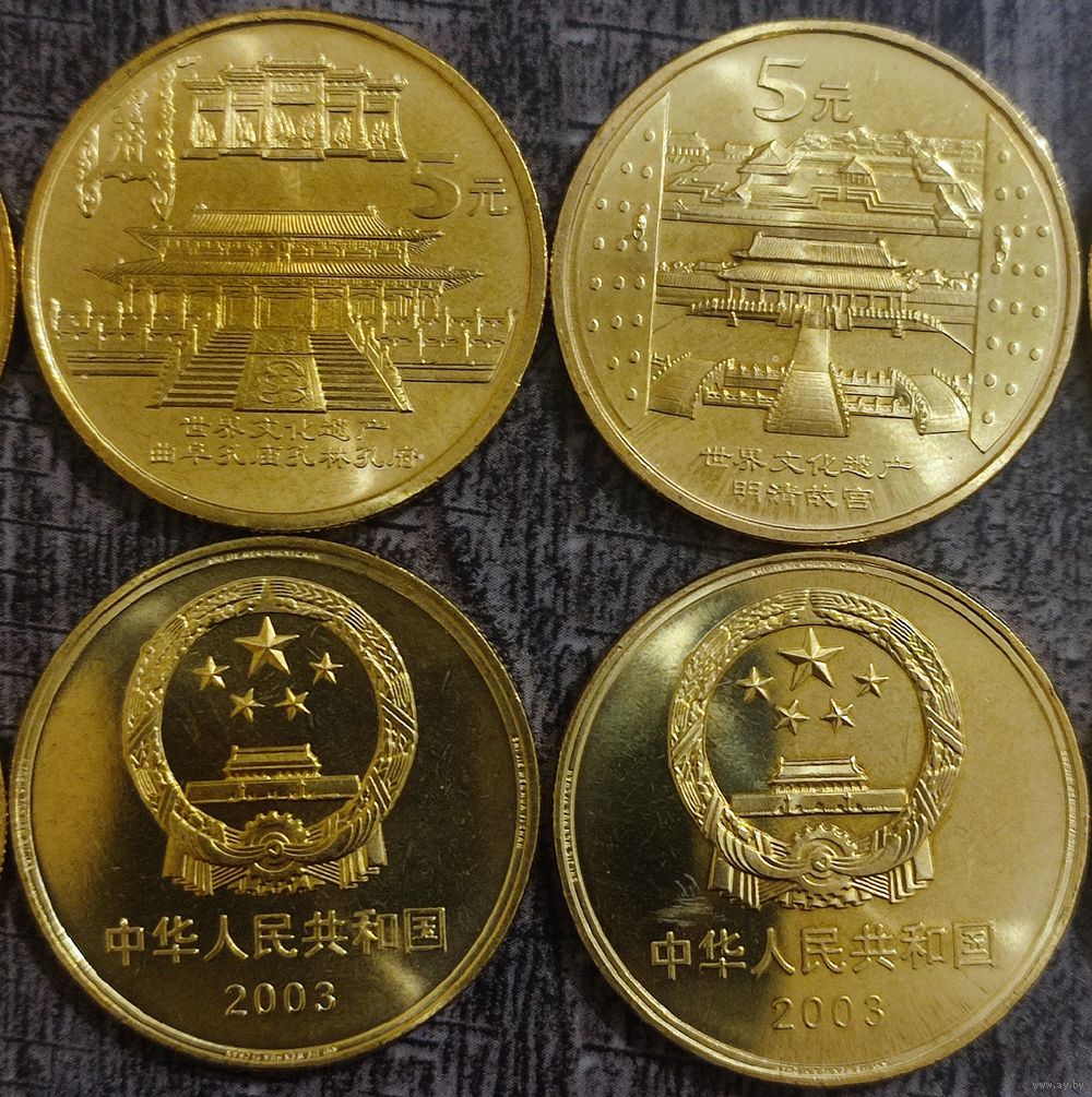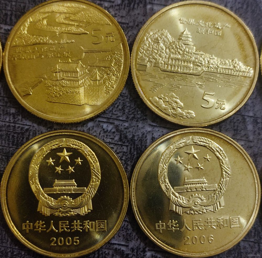 Китай 5 юань 2002-2006гг. Всемирное наследие ЮНЕСКО (полный комплект 10 монет).