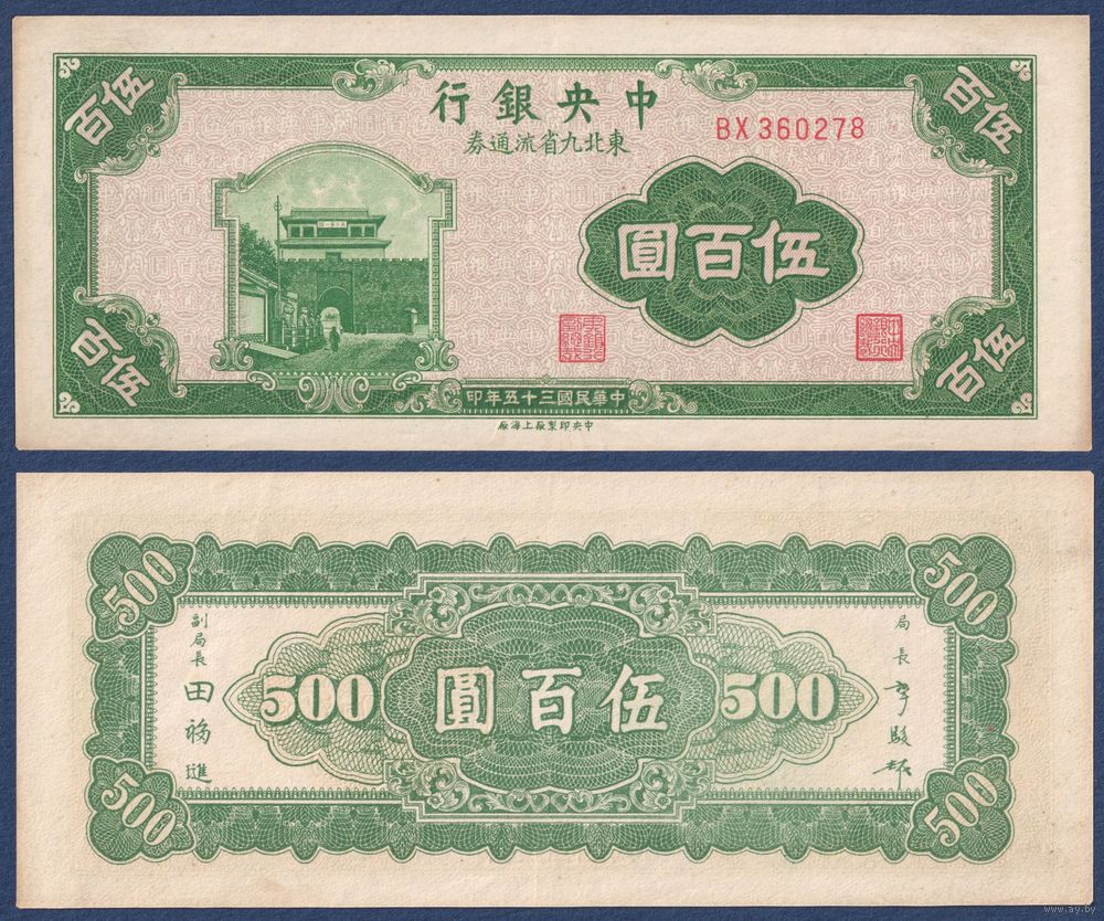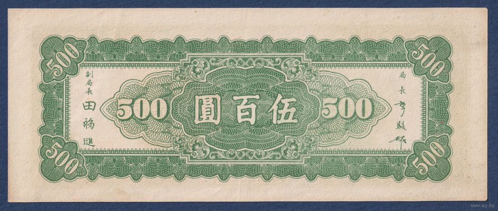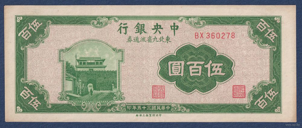 Китай, 500 юаней 1946 г, P-380a (BX, таможня Шань, перевал Южный Ханьхай), XF