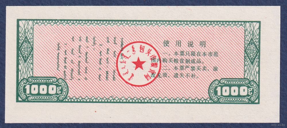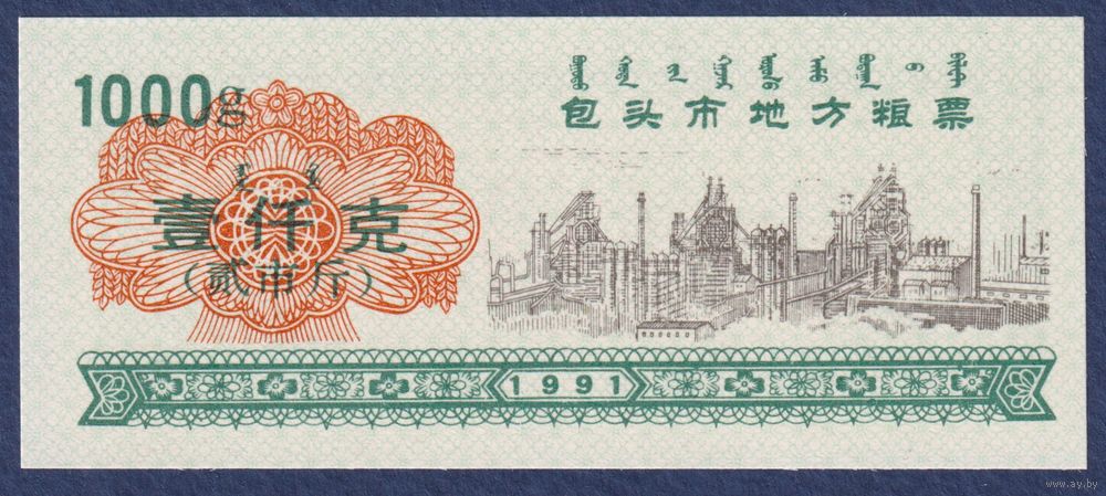 Китай (Баотоу), рисовые деньги (продовольственный талон) 1000g 1991 г., UNC