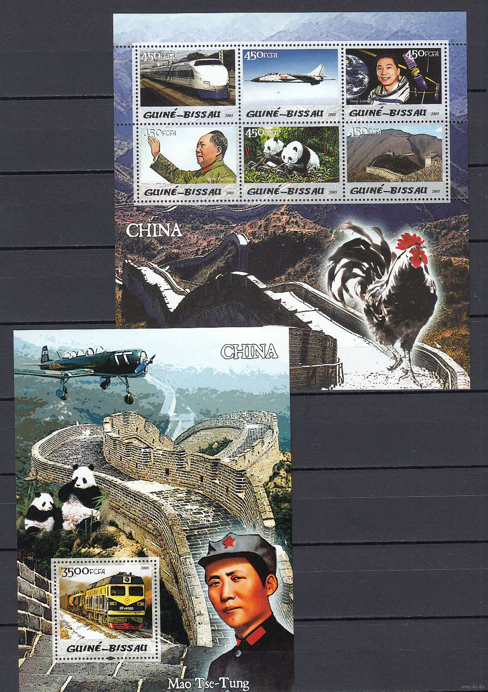 Китай. Космос. Авиация. Фауна и др. Гвинея-Бисау. 2005. 1 малый лист и 1 блок. Michel N 3072-3077, бл513 (25,0 е)