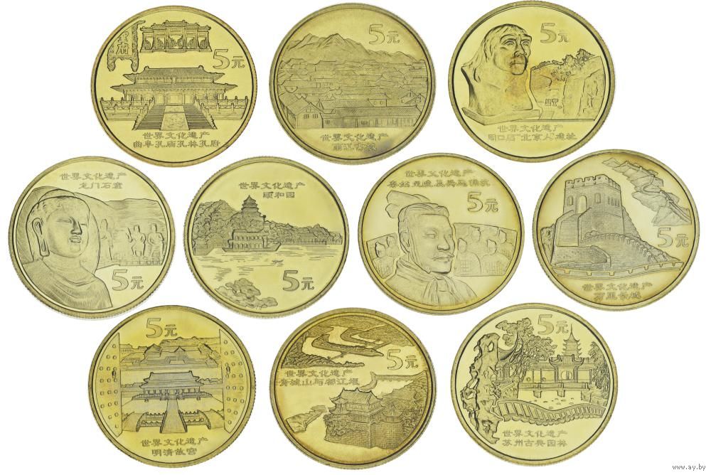 Китай НАБОР 10 монет 2002-2006 Достопримечательности Китая UNC