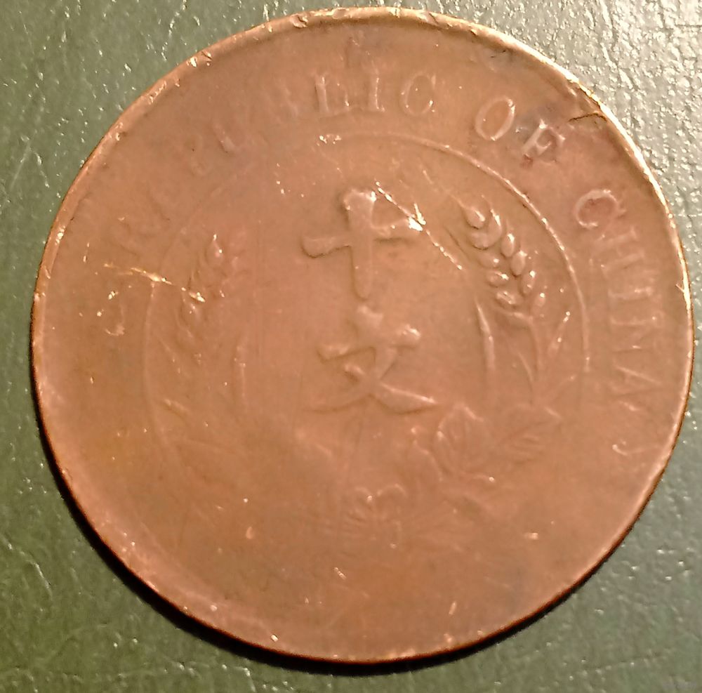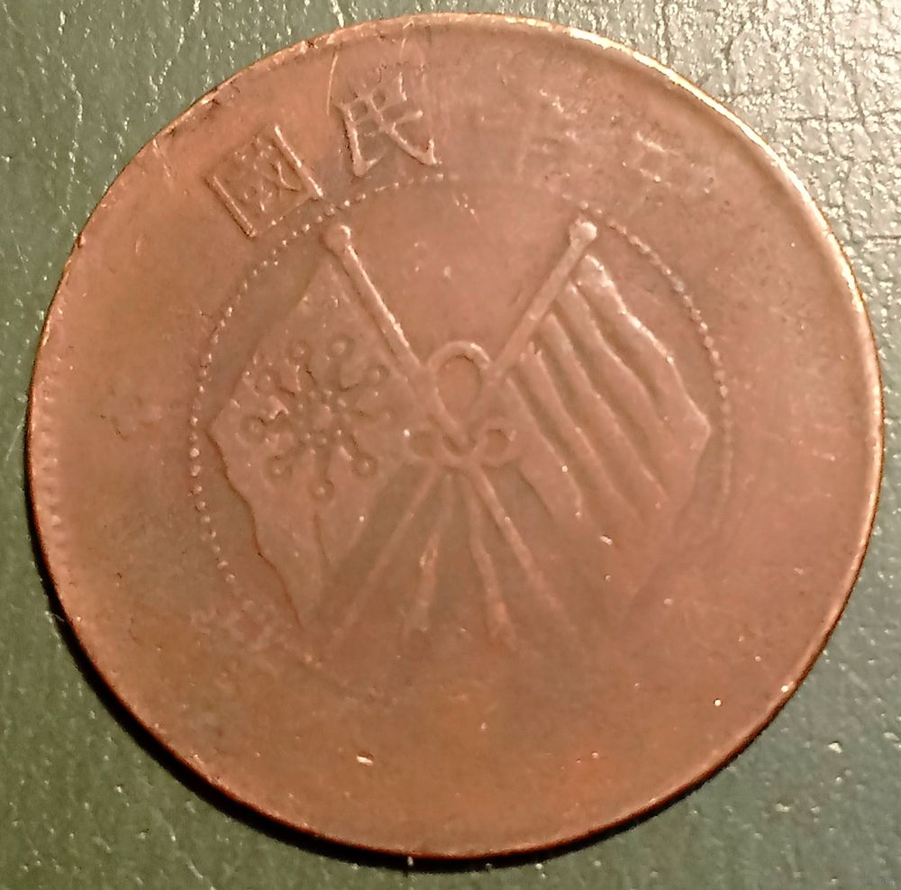 Китай. Республика 10 кэш 1920. Флаги. Медь