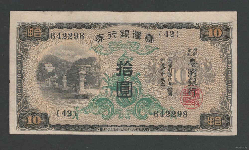 Китай Тайвань 10 йен 1932 года. Тип P-1927. Состояние XF+