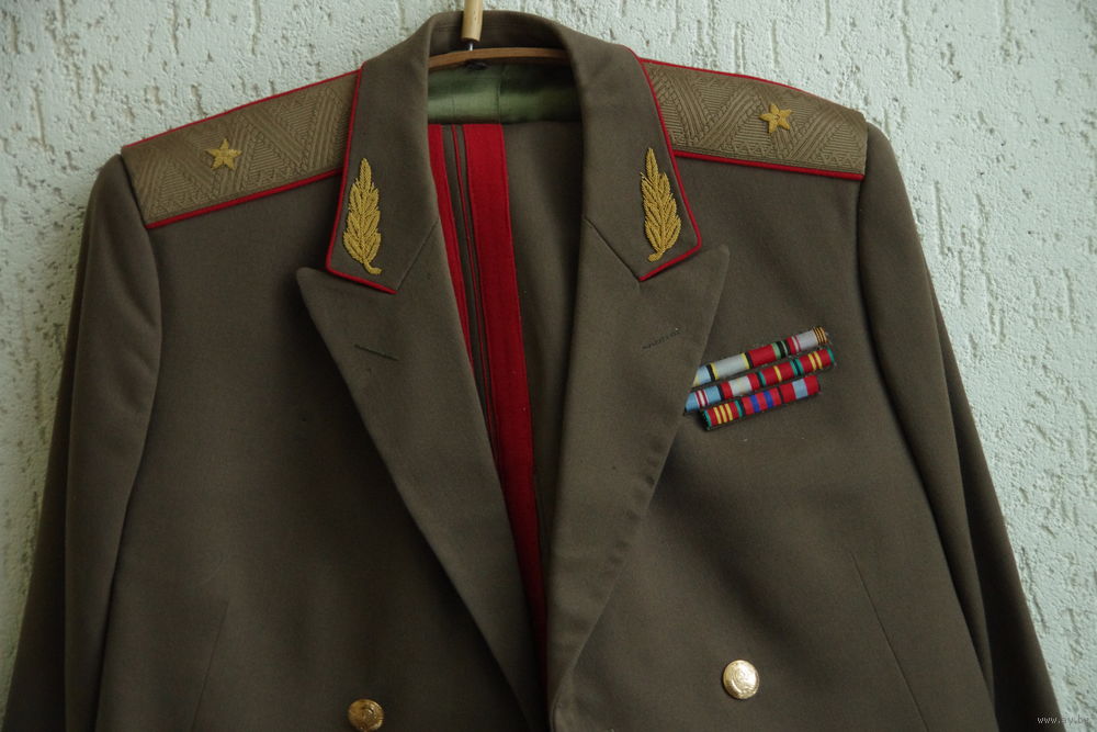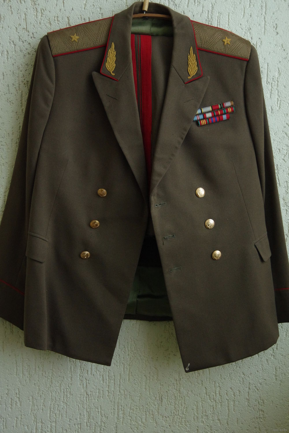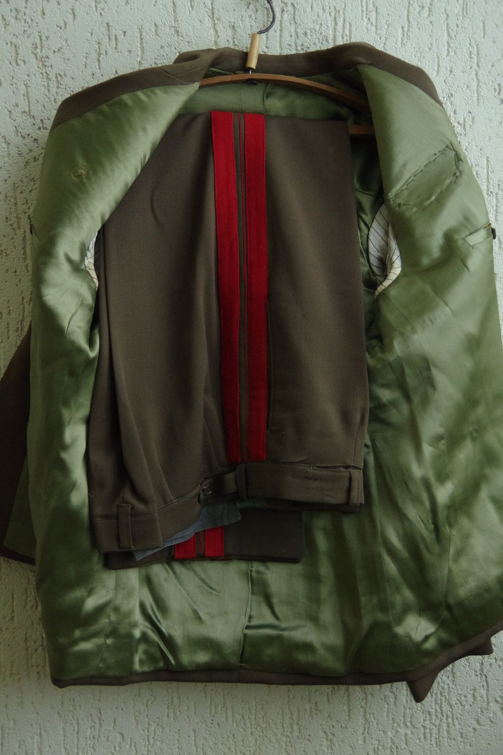 Китель - плечи 49 см , длинна рукава 72, 5 см , длинна кителя 83,5 см ; Брюки - объем 100 см , длинна 112 см