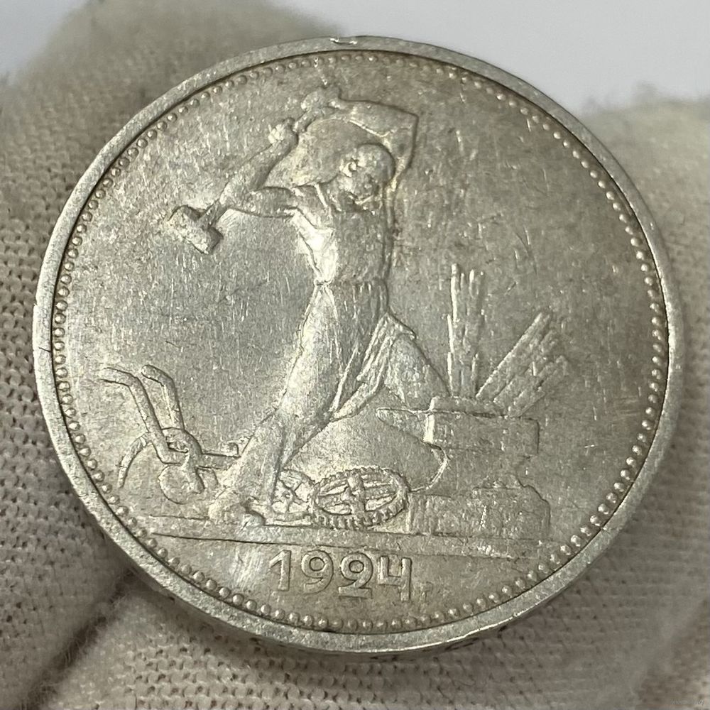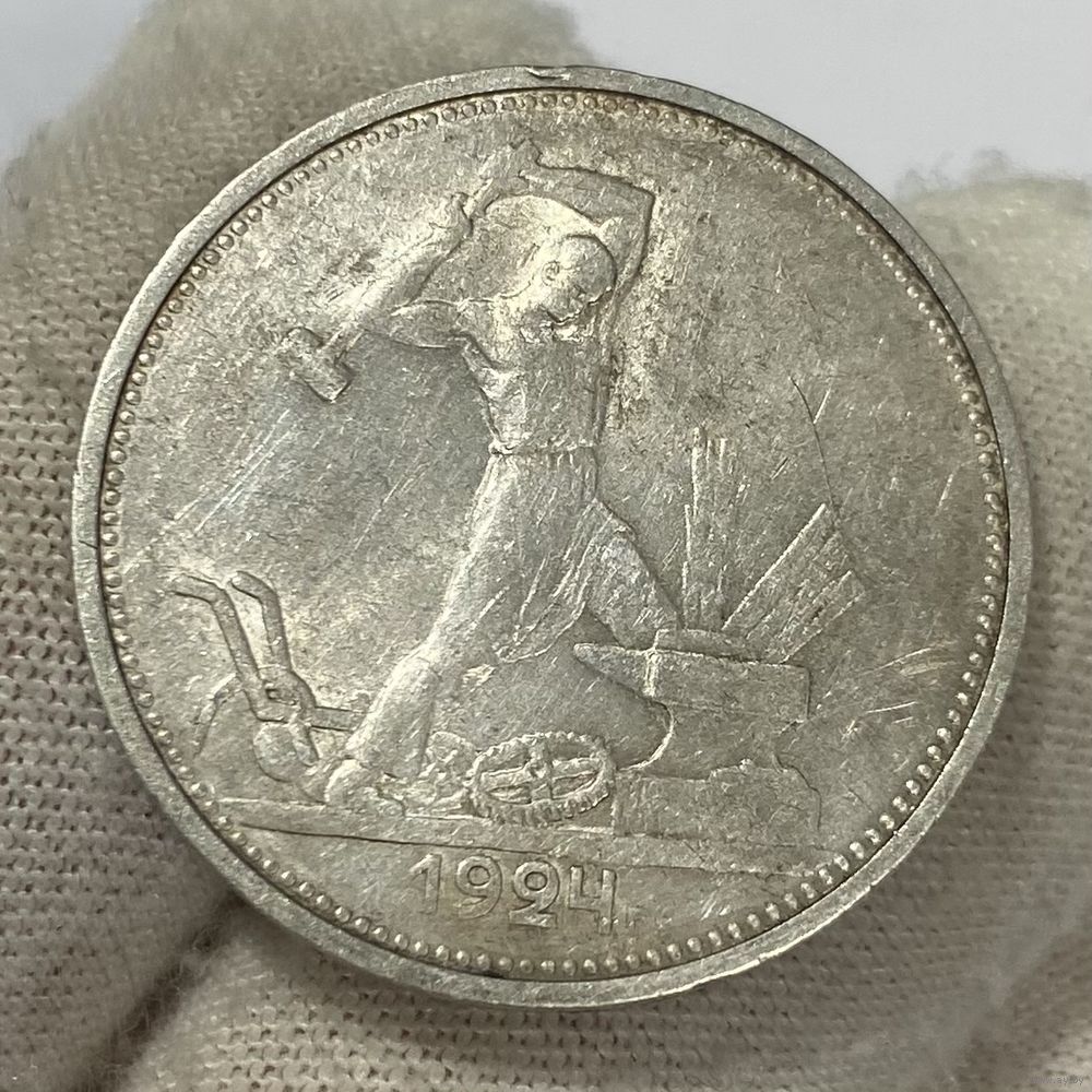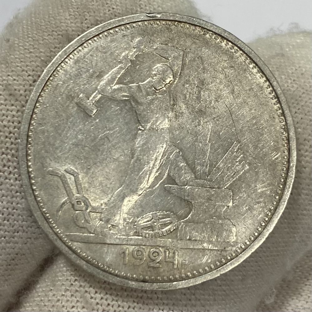 Кладовой полтинник ( 50 копеек ) 1924 г., ТР, СССР. Ярчайший блеск и золотистая патина
