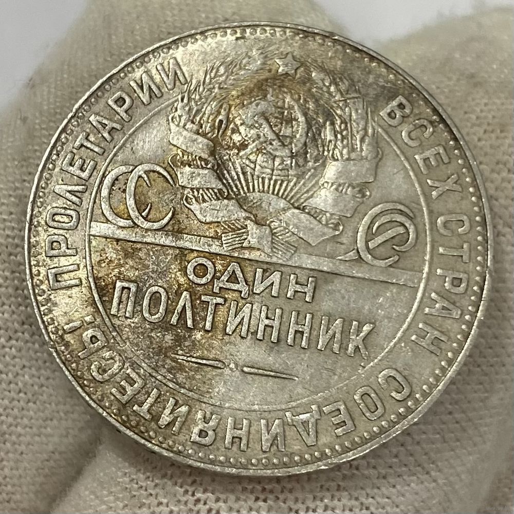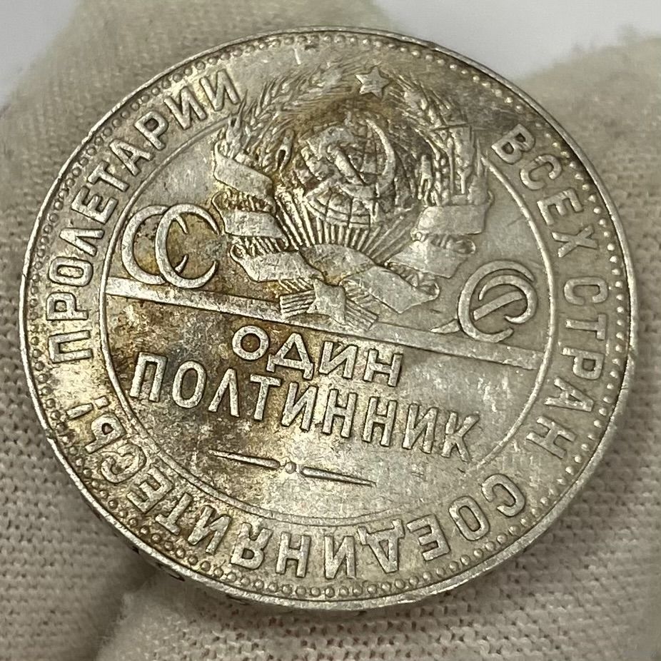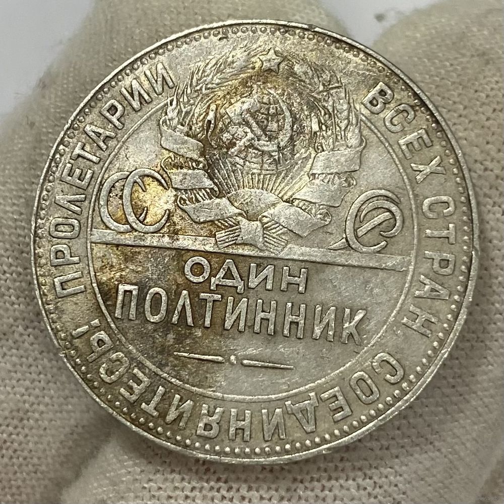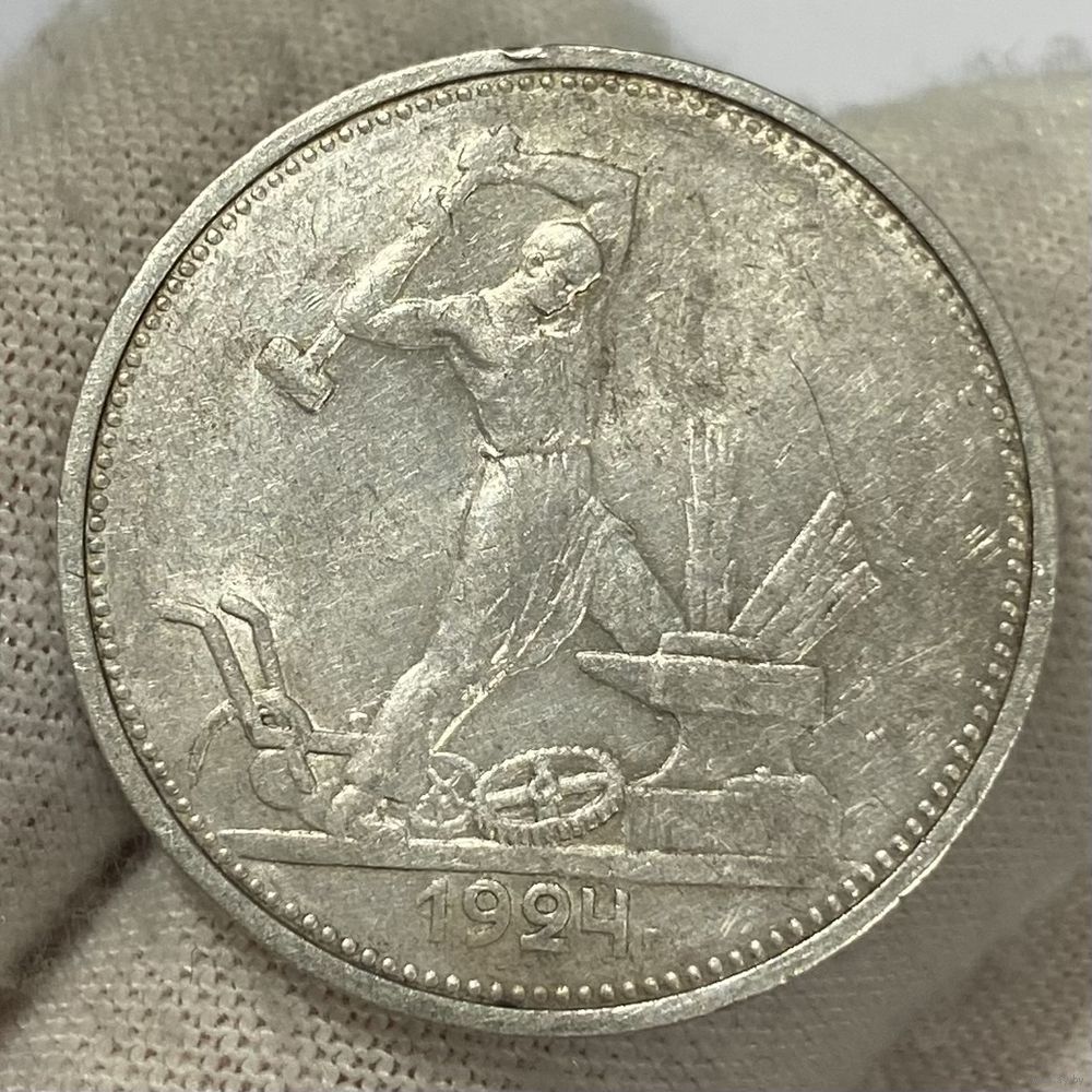 Кладовой полтинник ( 50 копеек ) 1924 г., ТР, СССР. Ярчайший блеск и золотистая патина