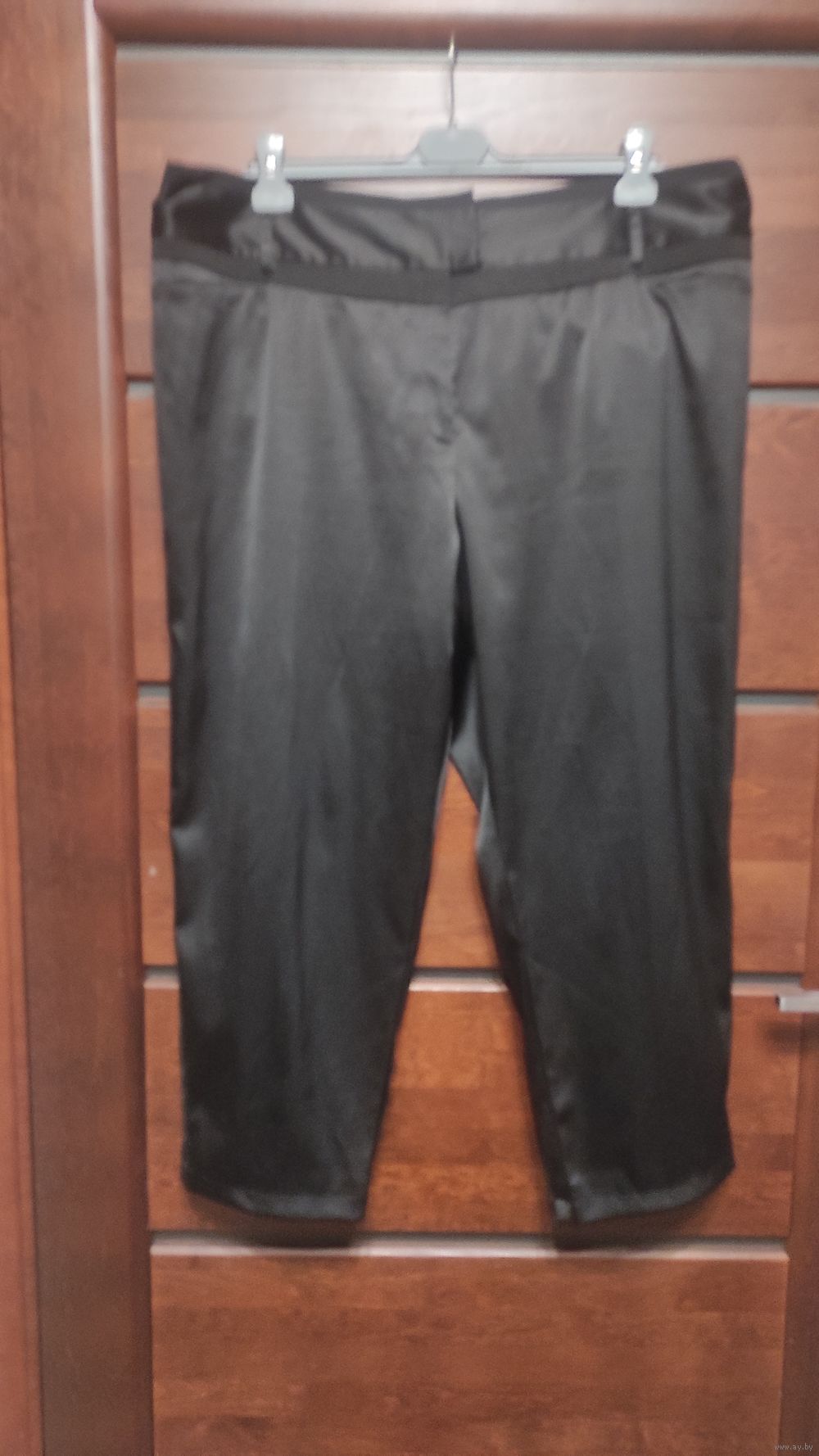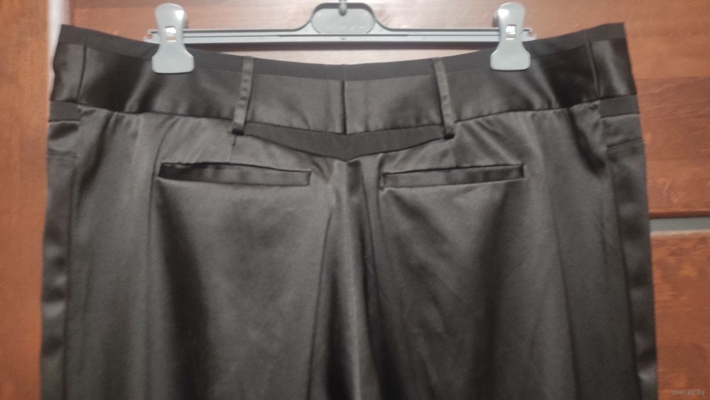 Классические брюки на 62-64 размер. Цвет черный, нарядные. Плотная брючная ткань. Длина 97 см, ПОталии 54 см (не тянется), ПОбедер 70-80 см (тянется), ПО по низу калошины 22 см. Отличное состояние, пару раз б/у. Очень хорошо сидят на фигуре.