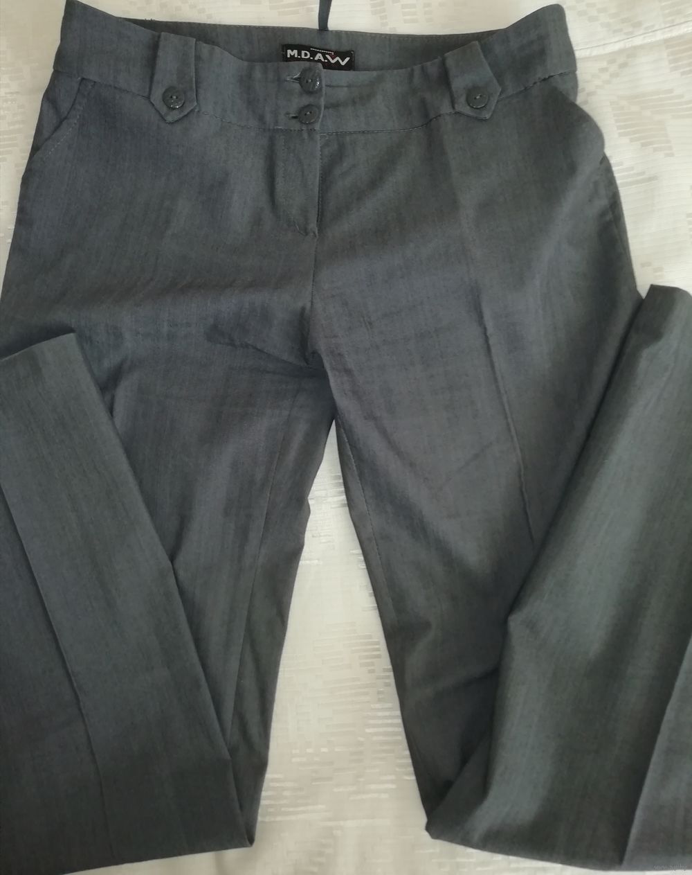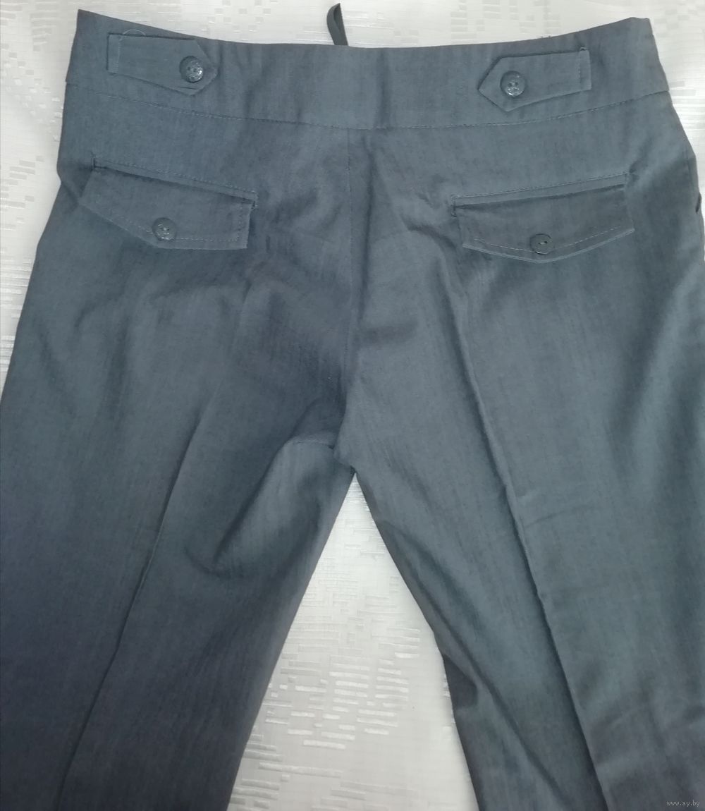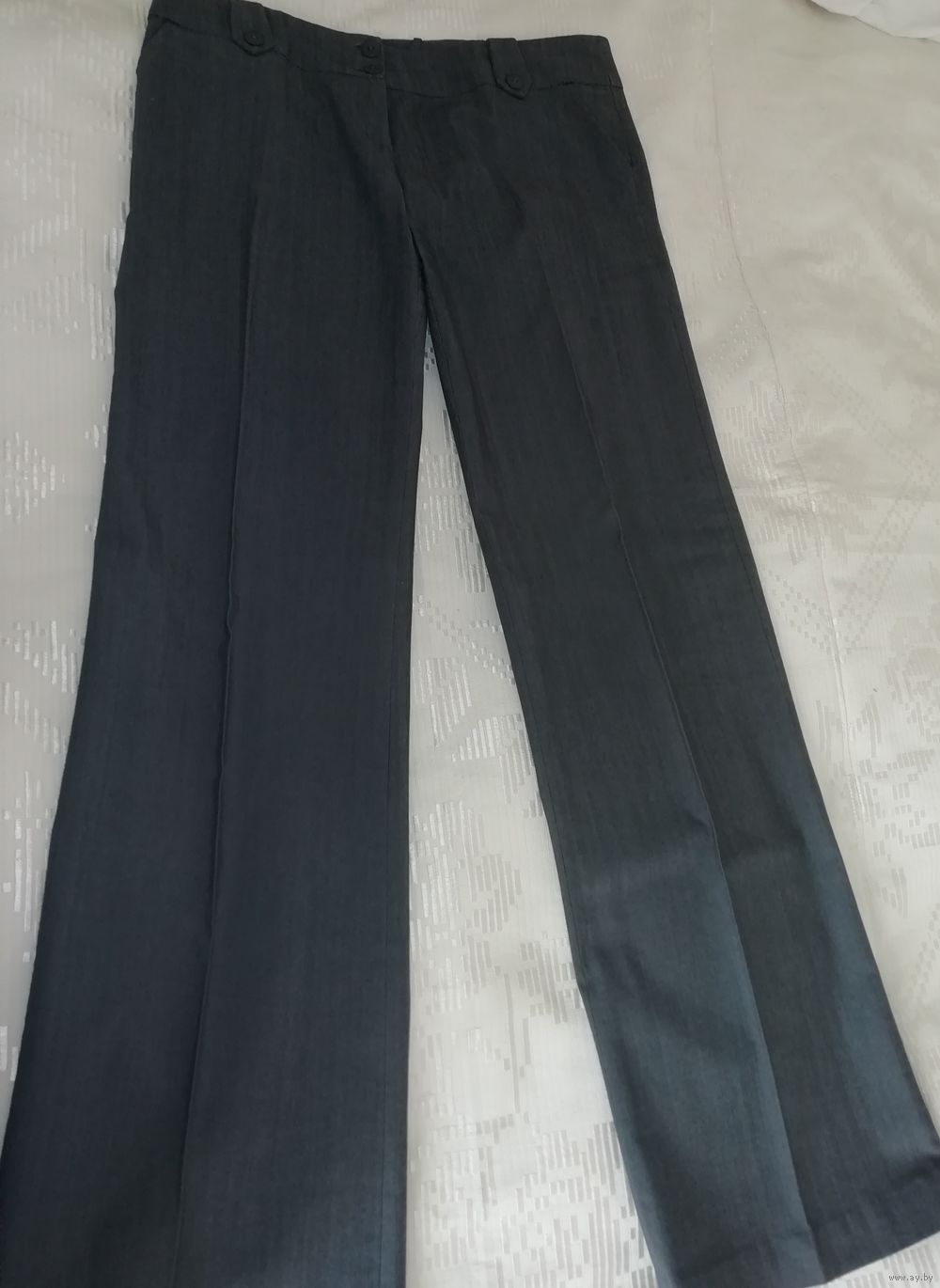| Прямые элегантные брюки, красиво лежащие на фигуре, пояс чуть ниже талии.Длинна 103см, окружность по низу штанины51-52см. | |