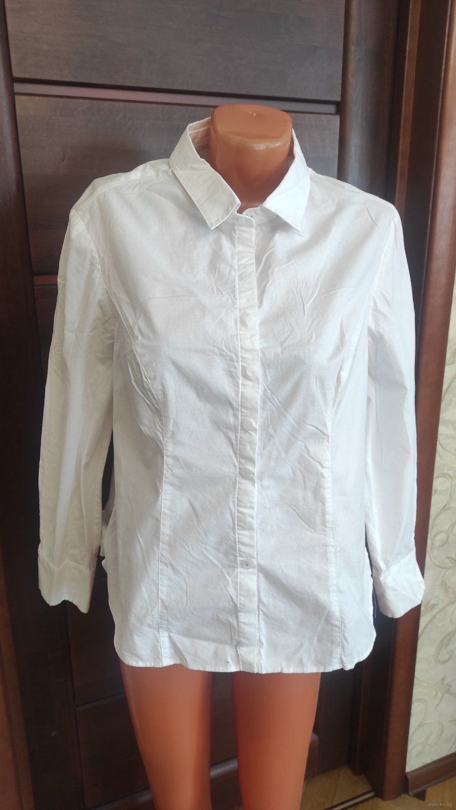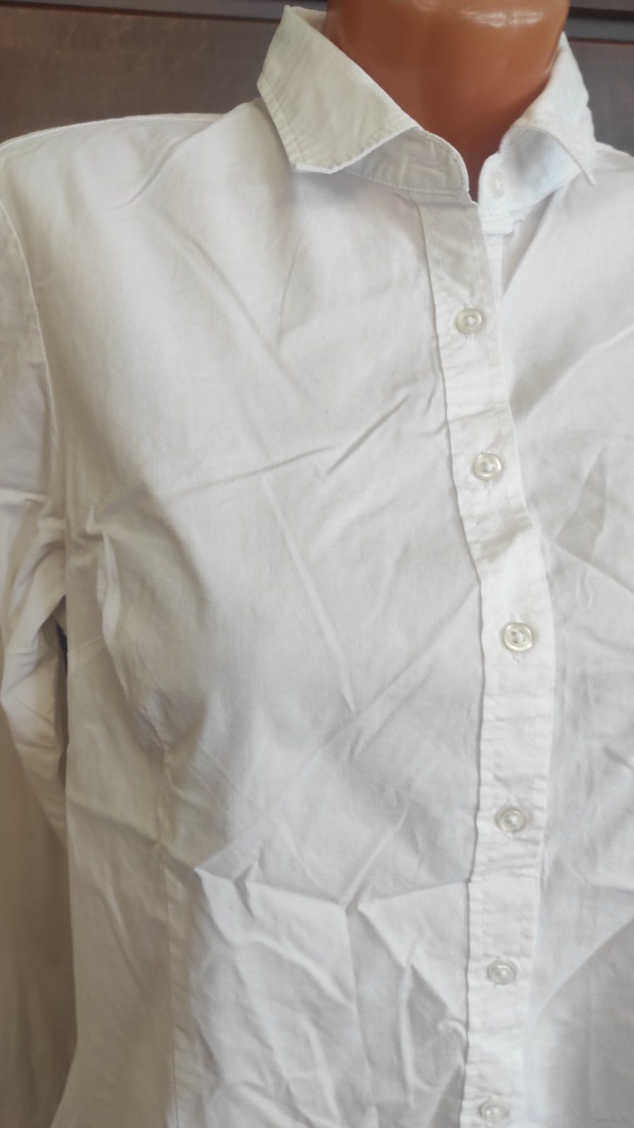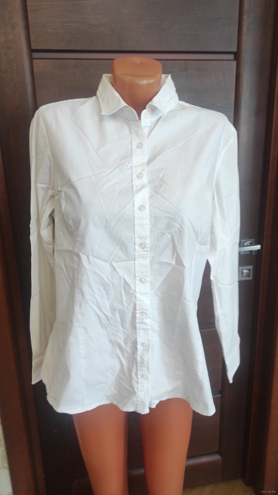 Фото 5-6. Белая рубашка на 52-56 размер, хлопок отличного качества. Б/у, в хорошем состоянии. Замеры: Длина 67 см, длина рукава 61 см, ПОгруди 58 см, ПОталии 53 см. Цена 35,00