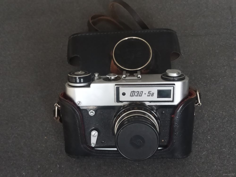Классический советский пленочный дальномерный фотоаппарат ФЭД-5В.Эта модель производилась Харьковским машиностроительным заводом им. Ф. Э. Дзержинского в период с 1975 по 1991 годы. Основные характеристики: Объектив укомплетован