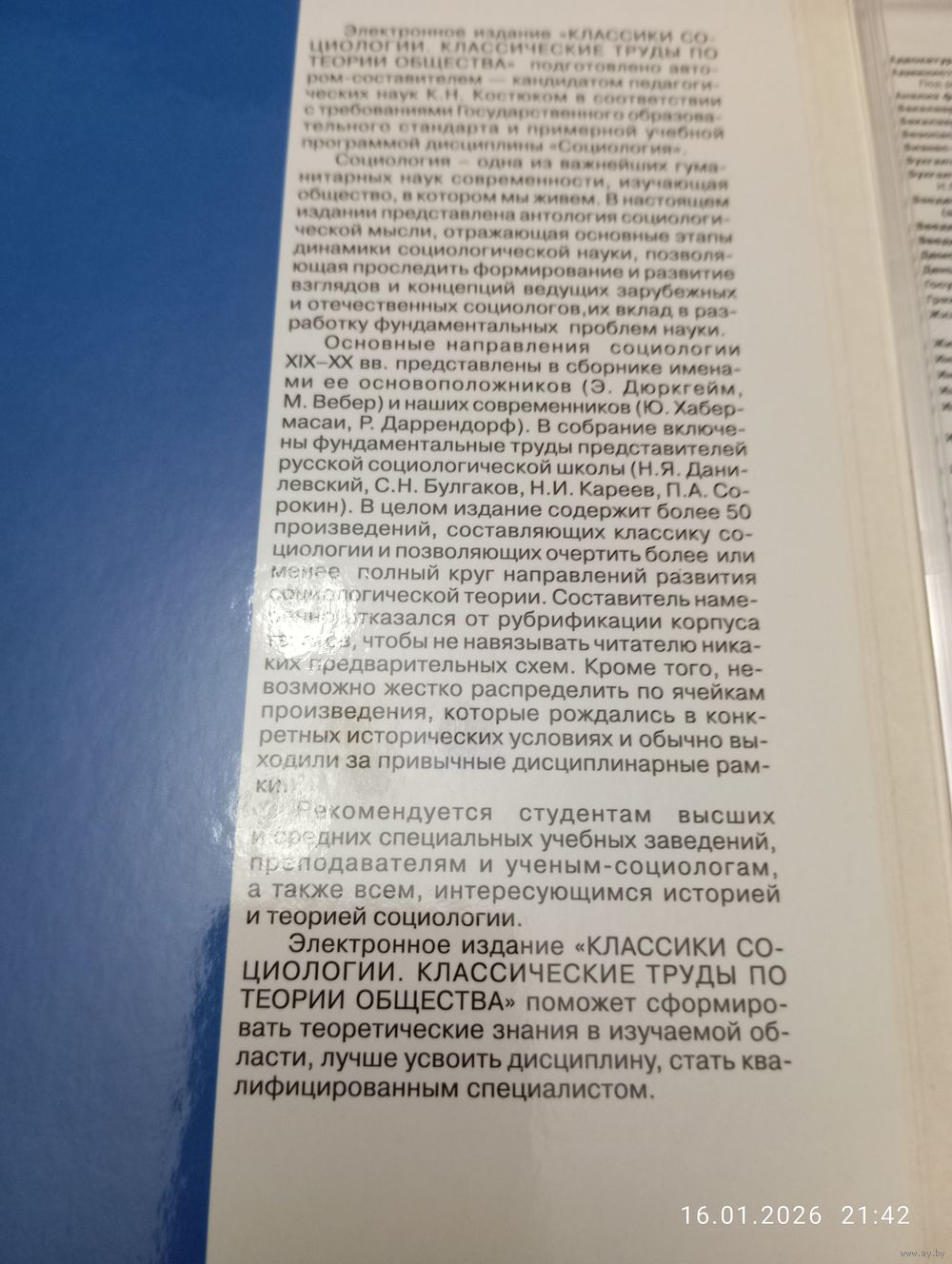 Классики социологии. Классические труды по теории общества. Сборник. Электронная книга CD-R. Сост. Костюк К. Редкий. Некс медиа 2011. Тираж 1000. Возможность отправки Белпочтой, полная предоплата на карту Беларусбанк
