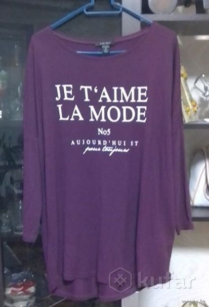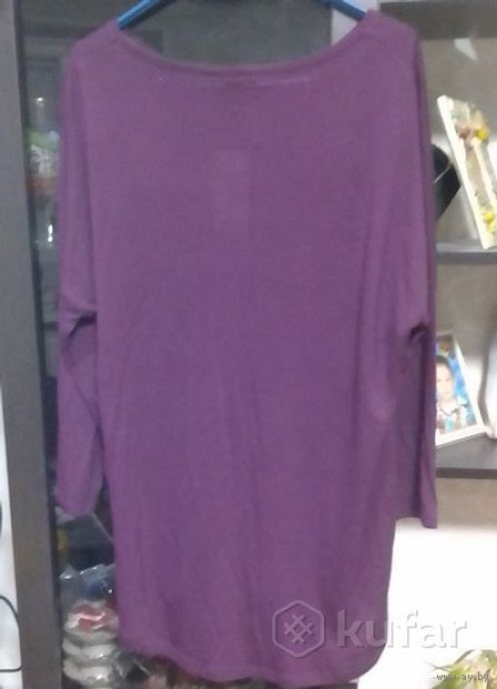 Классная турецкая туника, р-р 44-46, совершенно новая, покупалась в бутике в Польше, жаль, не подошла. Очень красивый насыщенный фиолетовый (винный) цвет (удалось передать только на фото 1,3). ПОГ и ПОБ 52см, рукав приспущенный 3/4 (вся его длина с плечом от ворота 57см, длина от плеча спереди 70см, сзади чуть длиннее 75см. Хорошее качество ткани - 95% вискоза, 5% ПЭ.
