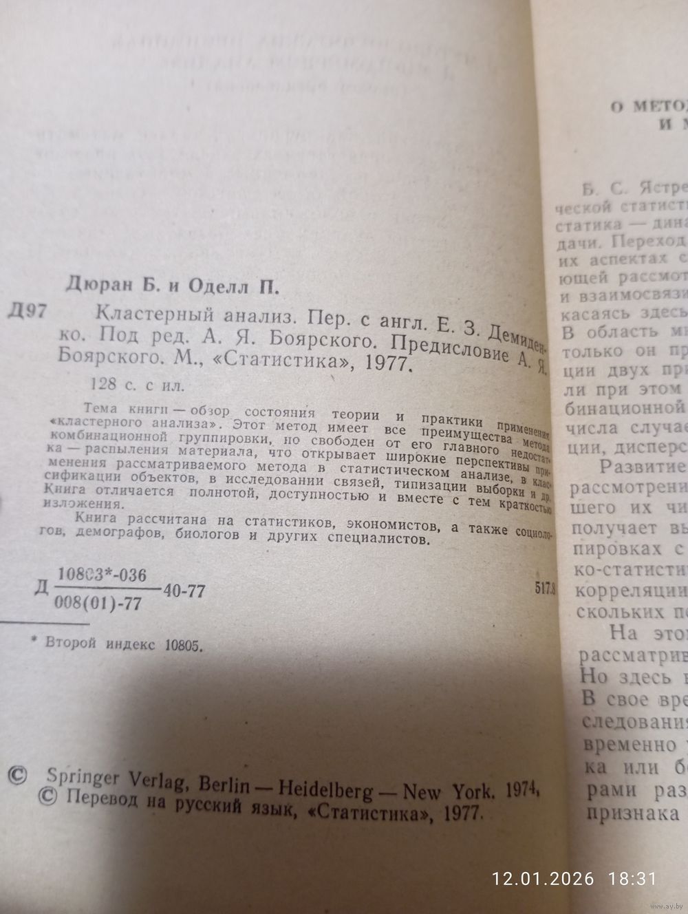 Кластерный анализ. Дюран Б, Оделл П. Редкая. М. Статистика 1977. В хорошем состоянии, мягкая обложка. 128 с. Тираж 11000. Возможность отправки Белпочтой, полная предоплата на карту Беларусбанк