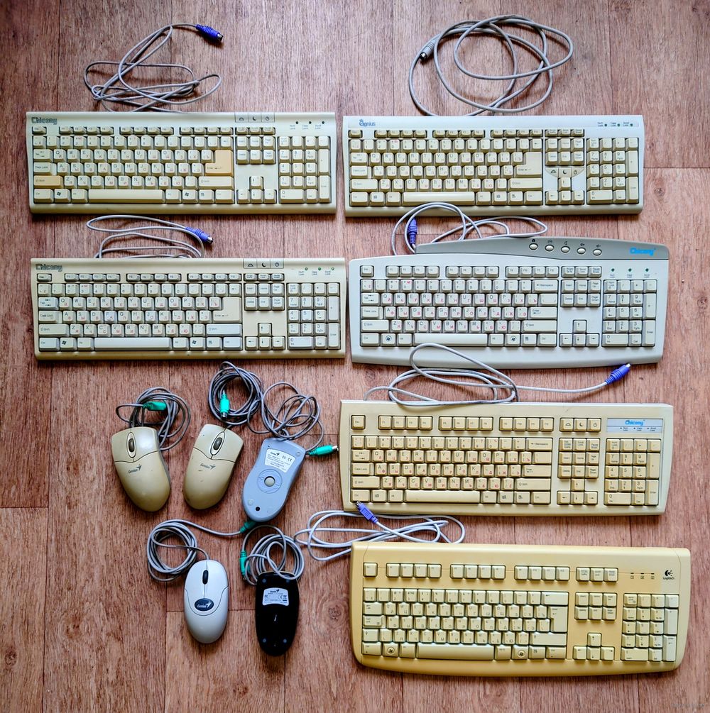 Клавиатуры и мыши хранил в резерве, до последнего были рабочие, корпуса без трещин и сколов. Последние лет 10 без эксплуатации. На текущий момент без компьютера (смартфон закрывает потребности) поэтому выставляю без проверки, цена за одну клавиатуру.