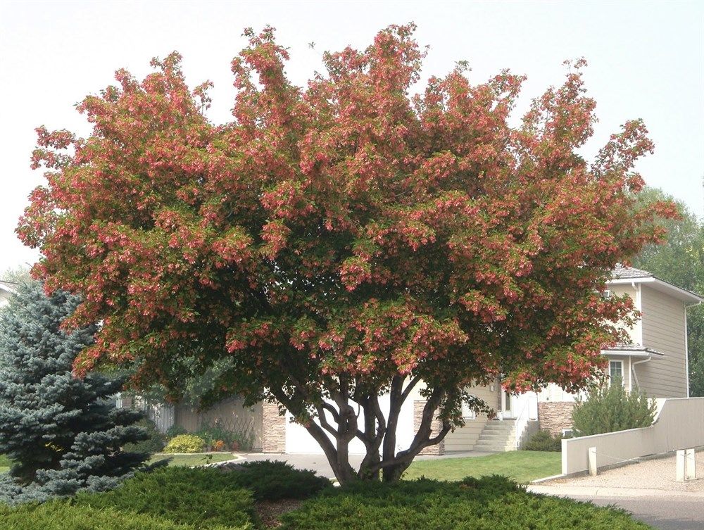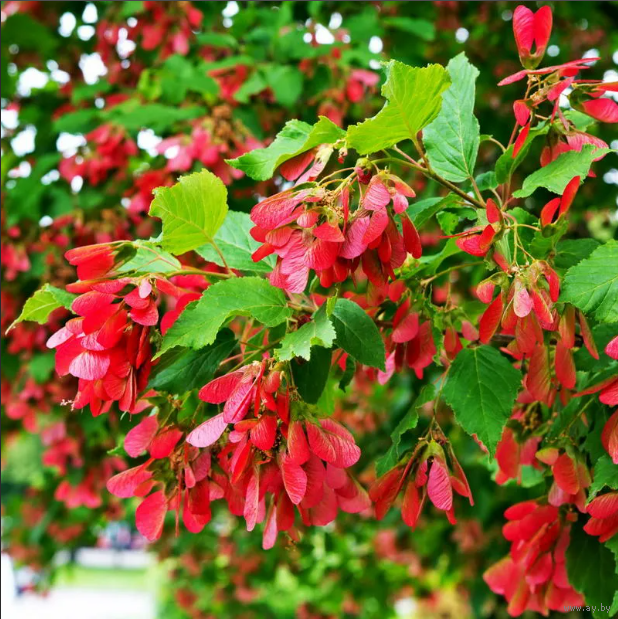 2. Декоративность (Особенно летом и осенью) У клена татарского есть уникальная фишка, которой нет у других кленов: Яркие плоды-крылатки: В июне-июле на дереве появляются семена-крылатки, которые окрашиваются в ярко-красный или розовый цвет.