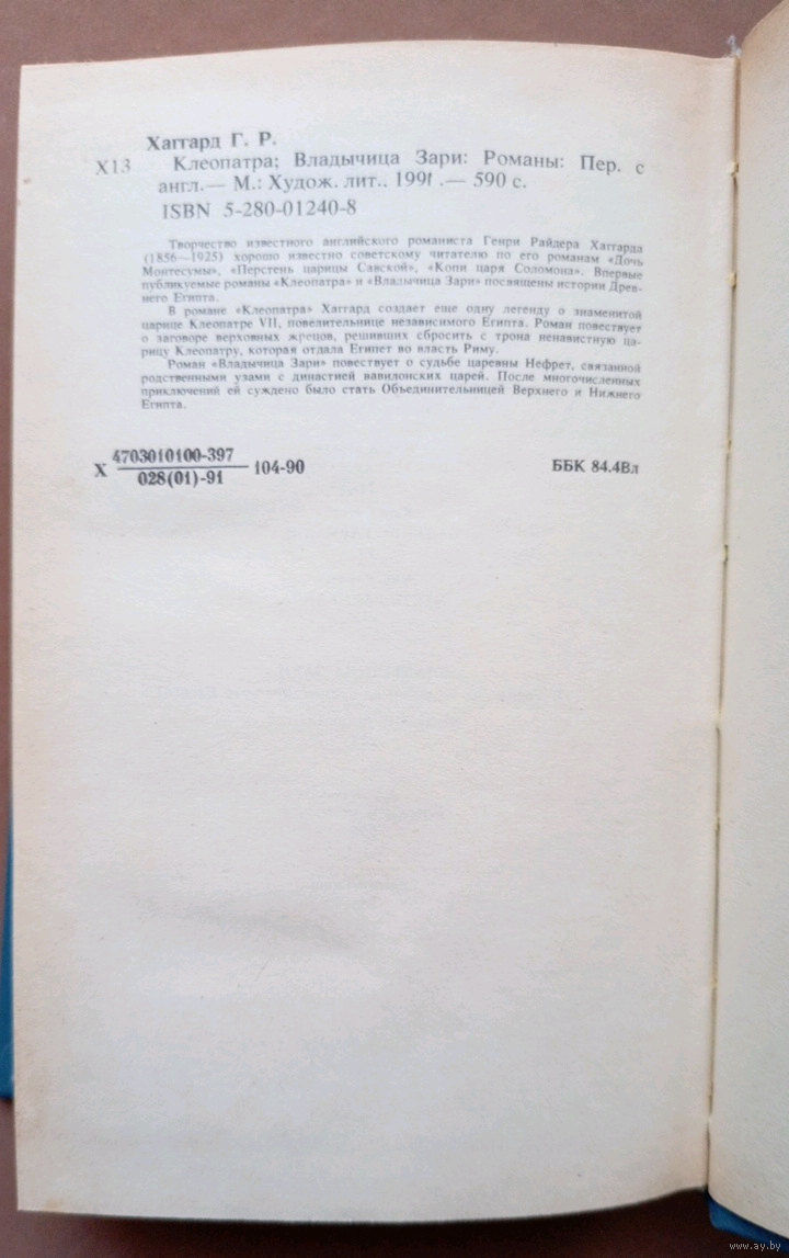"Клеопатра". Генри Райдер Хаггард.
