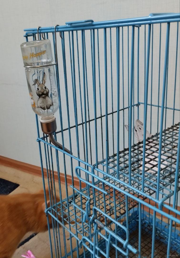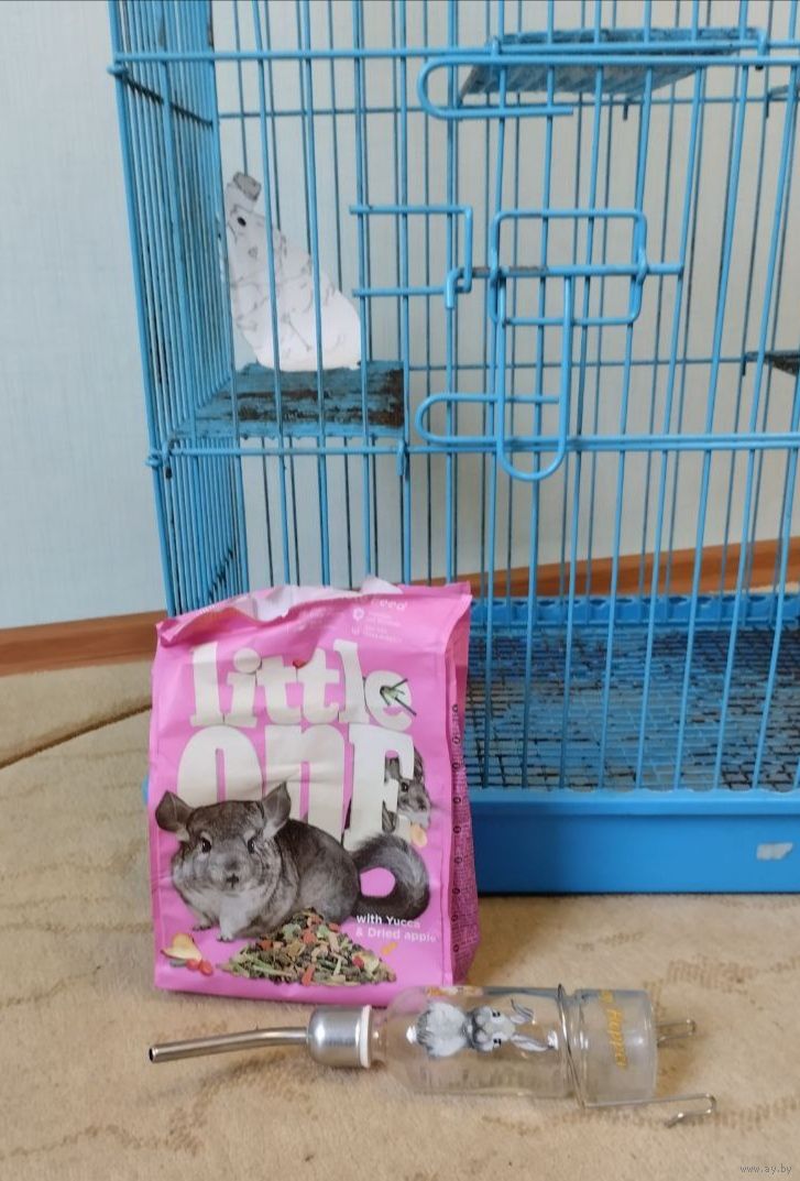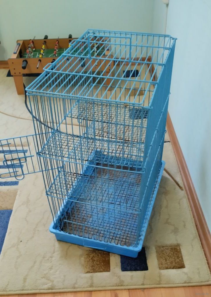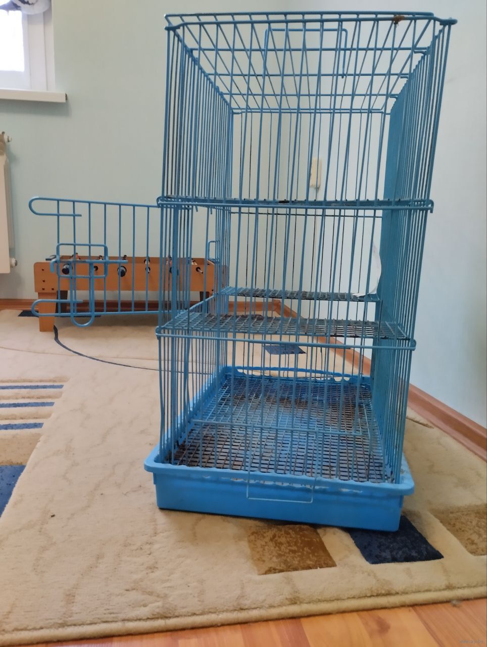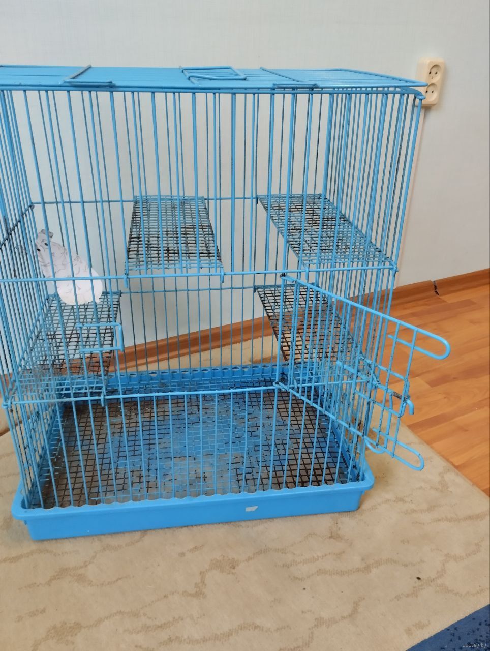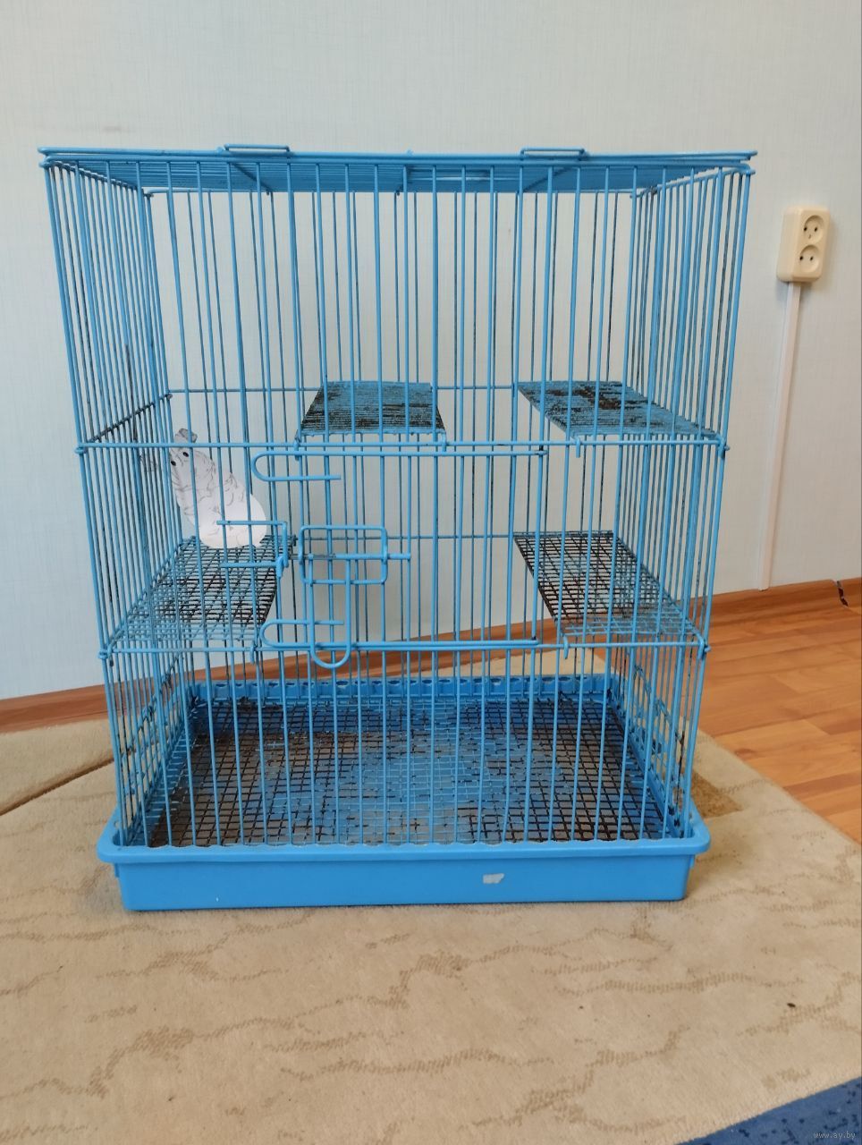 | Клетка просторная, этажи уровни можно менять на свое усмотрение, есть потёртости краски. Бонусом поильник и остатки корма. | |