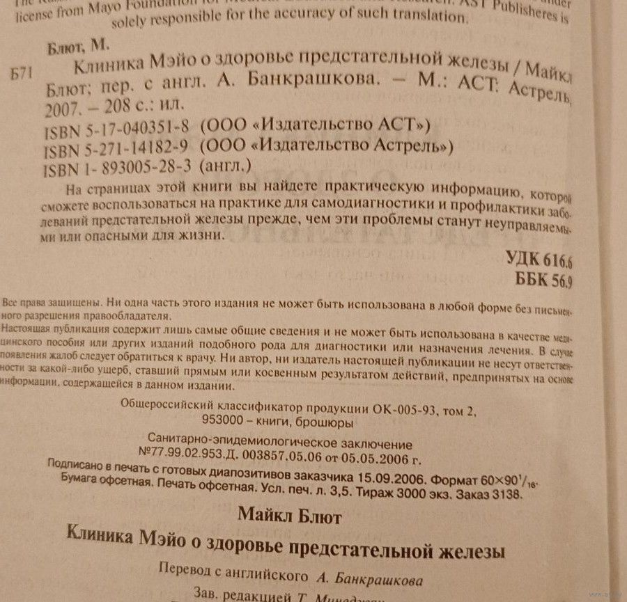 Клиника МЭЙО о здоровье предстательной железы .Серьезная книга о серьезной мужской проблеме .ЕСТЬ ПОМЕТКИ НА ПОЛЯХ.
