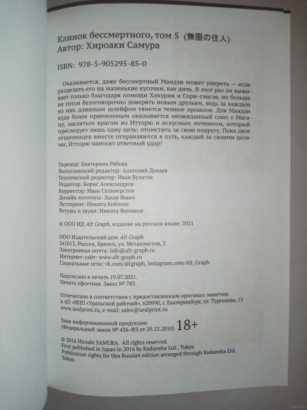 Оказывается, даже бессмертный Мандзи может умереть — если разделать его на маленькие кусочки, как дичь. В этот раз он выживает только благодаря помощи Хякурин и Сори-сэнсэя, но больше не готов безоговорочно доверять новым друзьям, ведь за каждым из них длинным шлейфом тянется темное прошлое. Для Мандзи куда более приемлемым оказывается неожиданный союз с Магацу, заклятым врагом из Итторю и искусным мечником, который преследует лишь одну цель: отомстить за свою подругу. Пока двое отщепенцев вместе отправляются в путь, каждый за своими целями, Итторю наносят ответный удар!