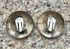 Крупные клипсы из металла серебристого тона (имеется отметка МЕТ.) родом из СССР. Диаметр 3см., имеются незначительные потёртости. Зажимы держат надёжно.