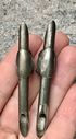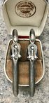 Необычные крупные клипсы из металла серебристого тона. Высота 6,7см. Металл местами покрыт патиной. Состояние хорошее.