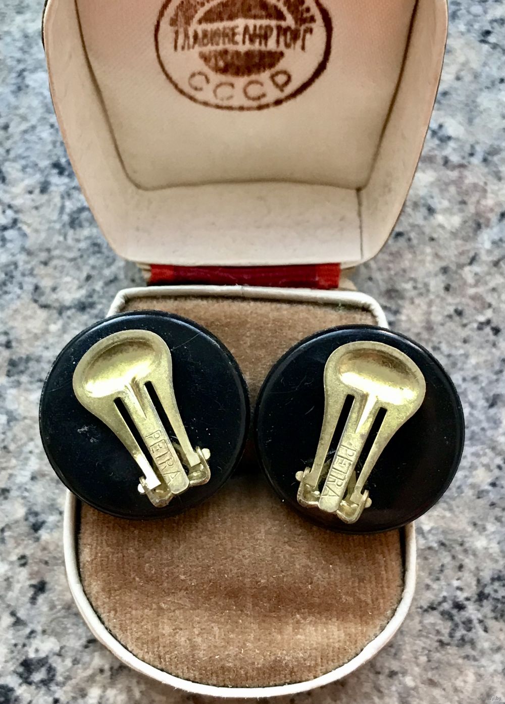 Винтажные клипсы из пластика. На лицевой стороне имеются царапинки. Диаметр 2,4см. На застежках стоит маркировка Petra (Германия 1980-е гг.)