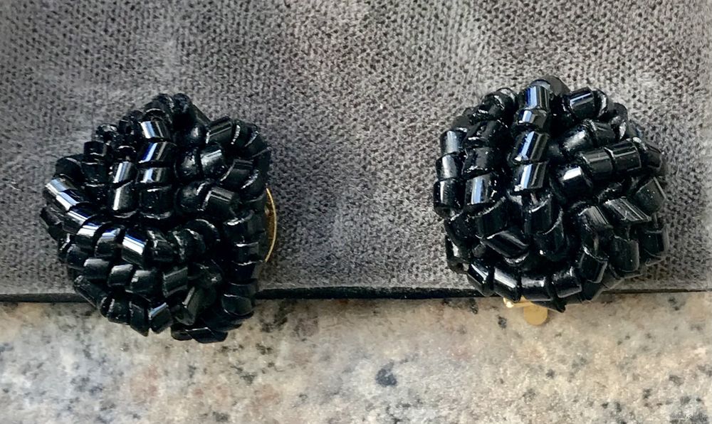 Винтажные чешские клипсы. Основа из латуни, на лицевой стороне бисер. Диаметр 2см. Состояние хорошее.