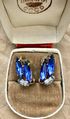 Винтажные чешские клипсы с основой из латуни с позолотой, вставки из цветного стекла. На одной вставке незначительный скол (учтено в цене). Высота клипсы 2см.