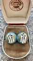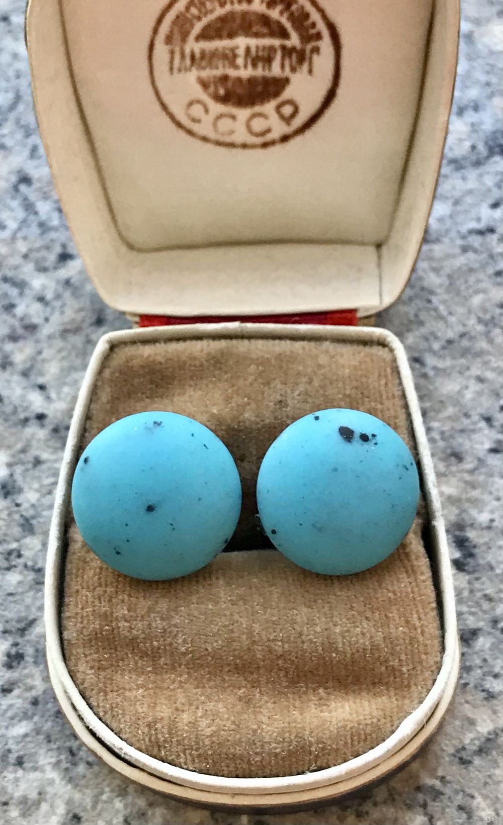 Винтажные клипсы с основой из латуни и вставок из художественного стекла. Диаметр 1,6см., состояние хорошее.
