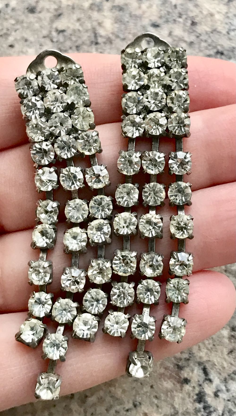 Крупные винтажные клипсы с основой из металла серебристого тона и вставок из прозрачных кристаллов. Высота клипсы 7см. Состояние хорошее.