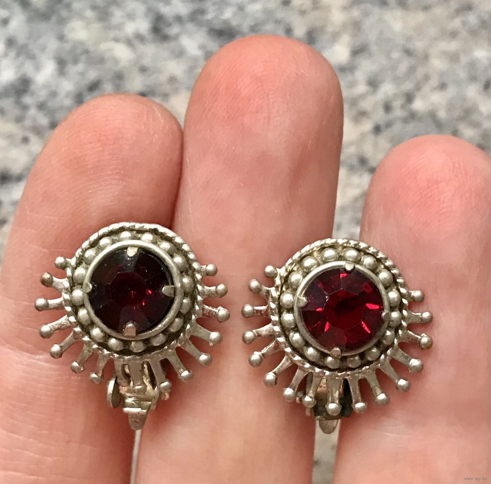 Винтажные клипсы из мельхиора и вставок из стекла. Диаметр клипсы 1,6см., диаметр вставки 0,8см. Состояние хорошее.