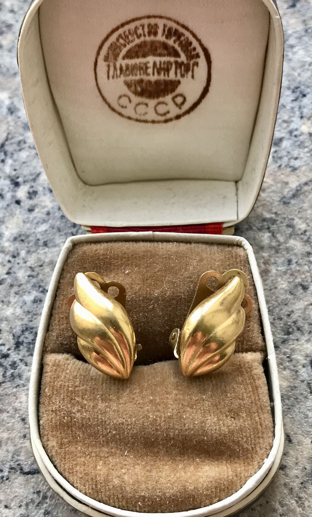 Небольшие винтажные клипсы из латуни с позолотой (стоит клеймо МК6). Высота 1,6см. Состояние хорошее.