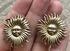 Крупные винтажные клипсы-солнышки из металла золотого тона. Диаметр 3см. Похожие есть у бренда Monet. Из нюансов сход позолоты в нескольких местах и обломаны несколько лучиков (в глаза не бросается). Цена указана с учётом всех нюансов.