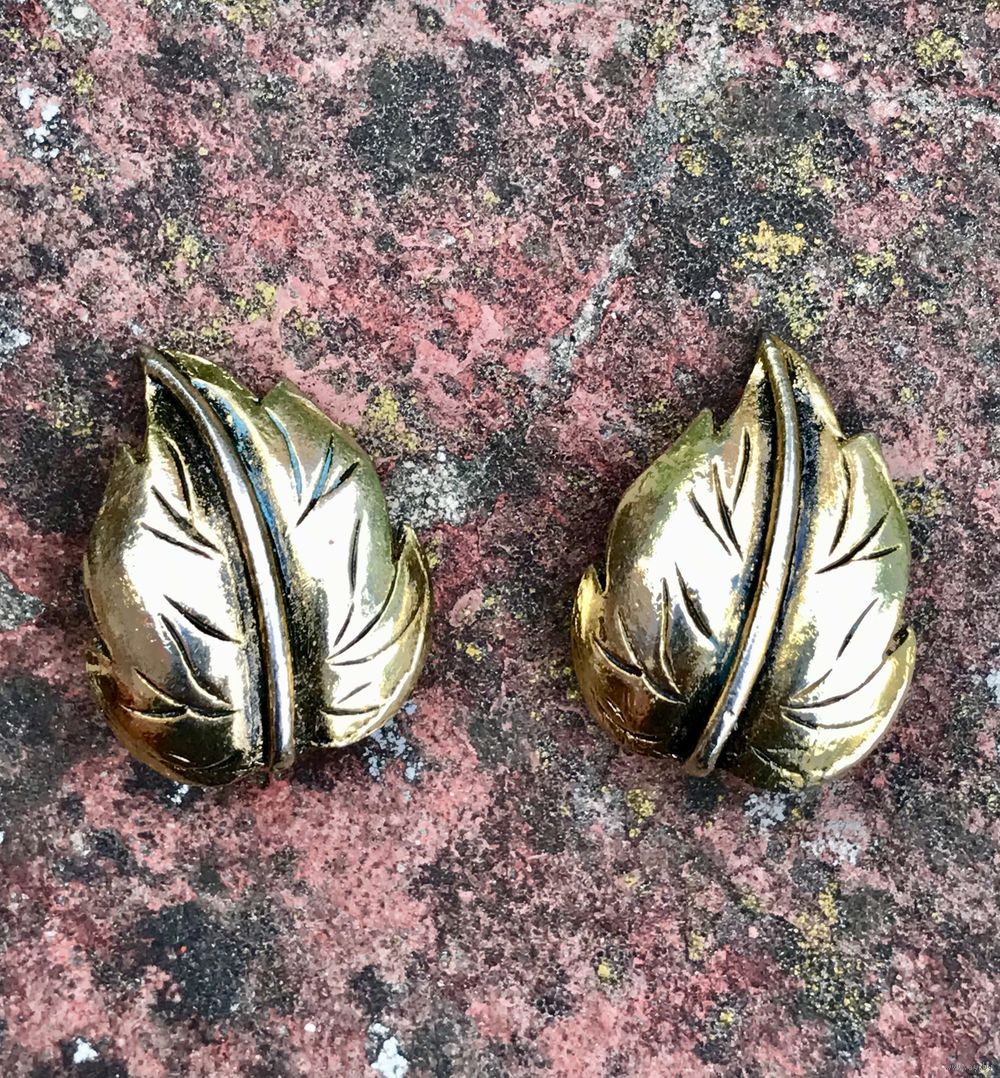 Крупные винтажные клипсы из металла золотого тона с чернением на лицевой стороне. Размер листочка 3х2см. Состояние хорошее.
