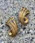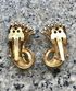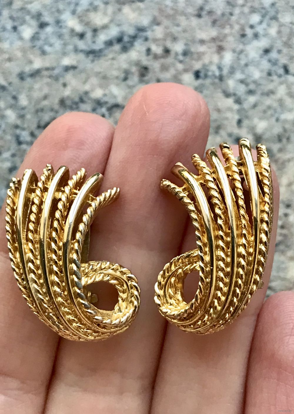 Крупные винтажные клипсы с основой из металла золотистого тона. На лицевой стороне имеются незначительные потёртости, что совсем не портит вид украшения, а придаёт ему только шарм. Высота клипсы 3см. Не маркированы.