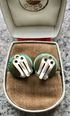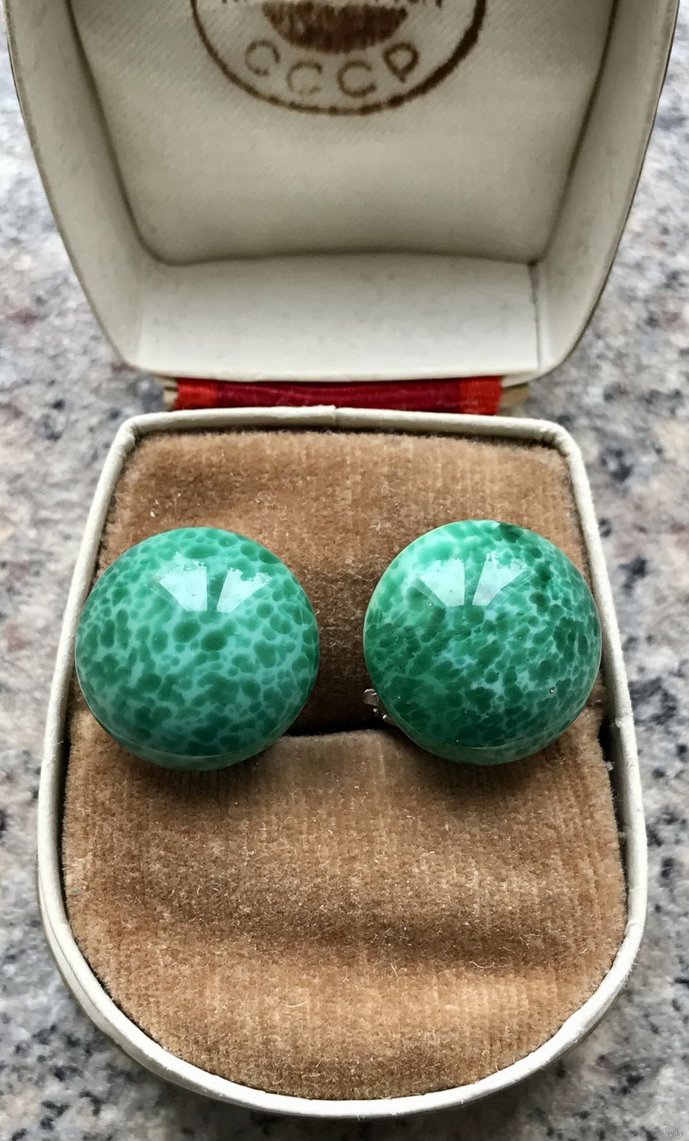 Винтажные клипсы со вставками из художественного стекла. Диаметр кабошона 1,5см. Застёжки держат надёжно. Состояние хорошее.