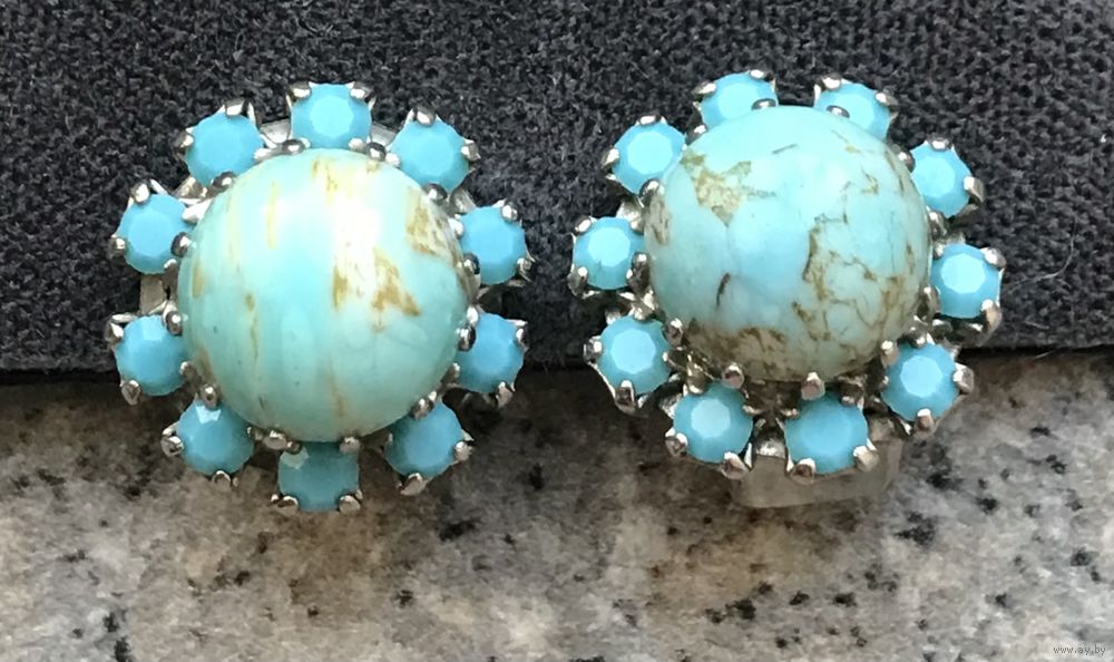 Небольшие винтажные клипсы со вставками из пекинского стекла и кристаллов. Высота клипсы 1,7см., диаметр центральной вставки 1см. Состояние хорошее.
