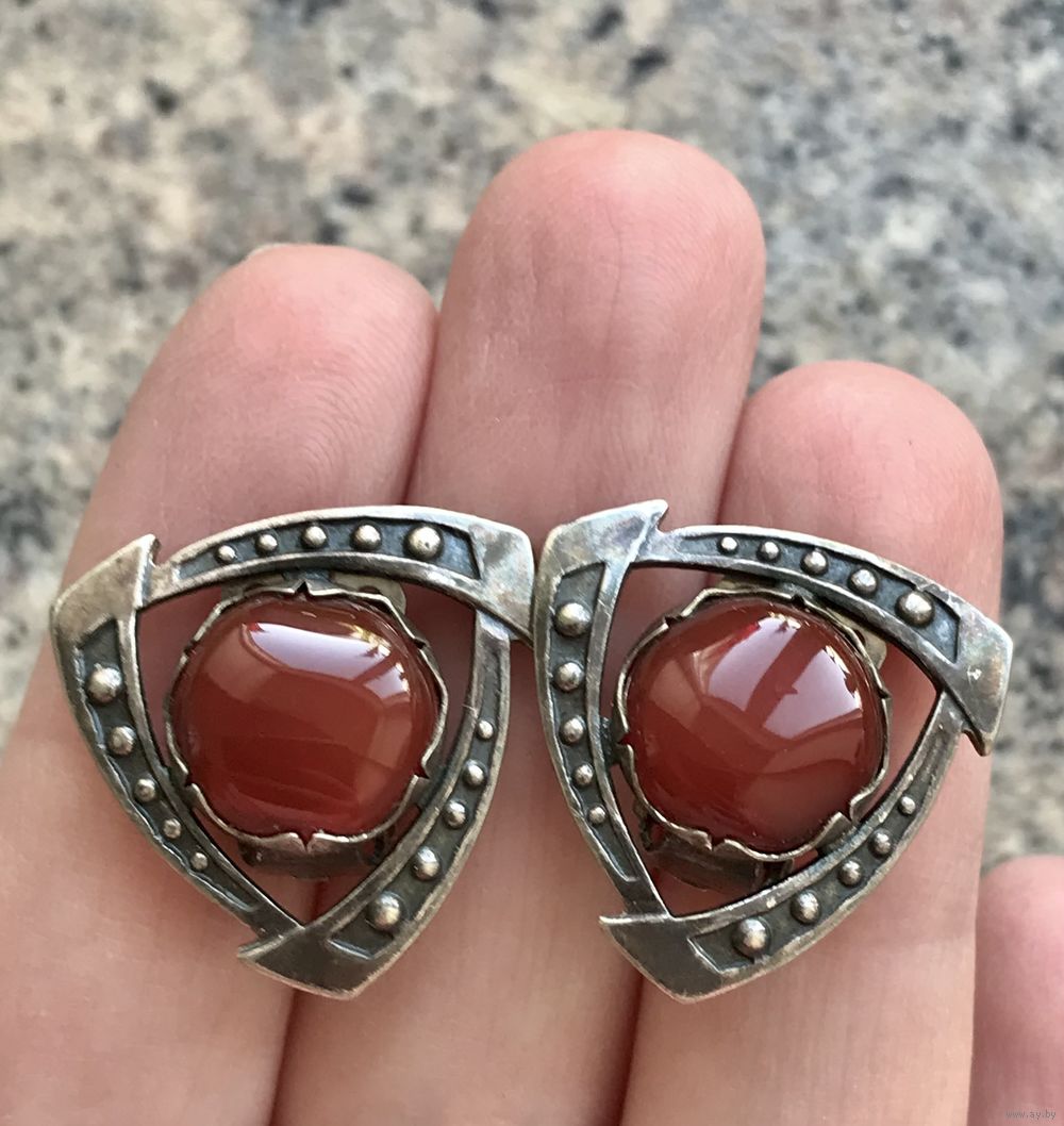 Винтажные клипсы из мельхиора с серебрением (клеймо) и вставок из худ.стекла. Высота 2см., диаметр вставки 1см. Состояние хорошее.