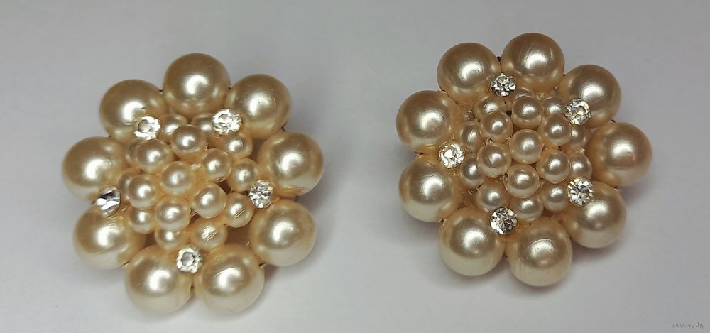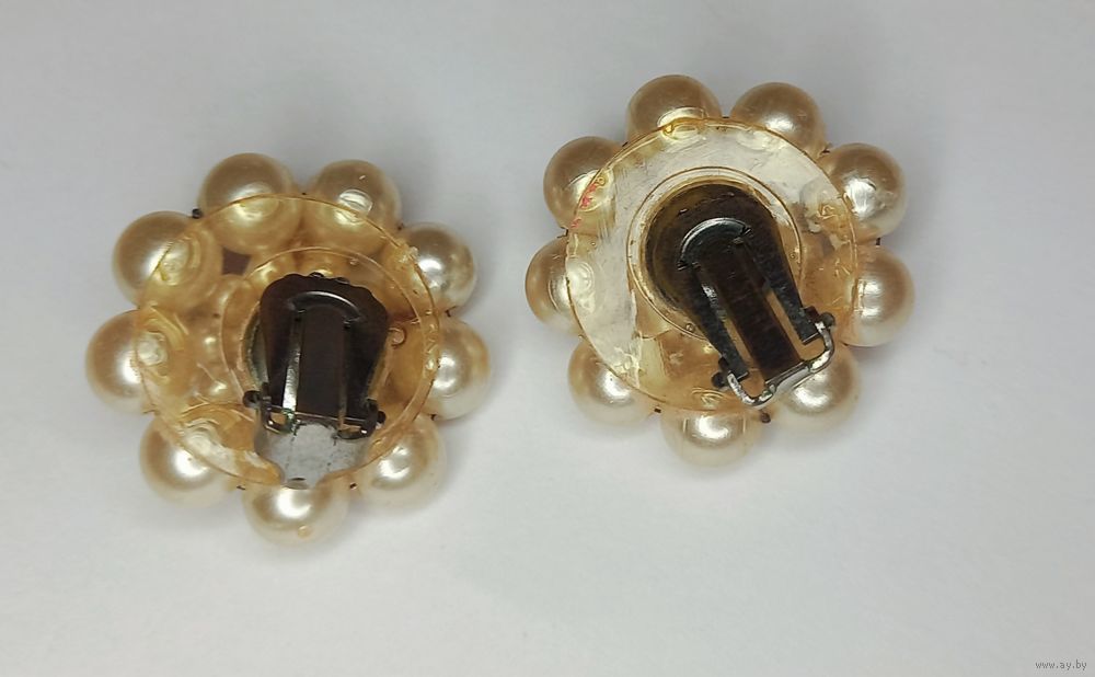 Винтажные наборные клипсы.Жемчужное покрытие в хорошем состоянии. Д 3.0 см