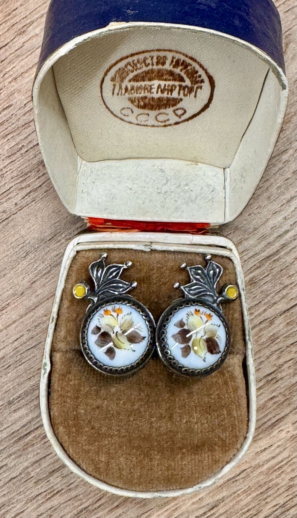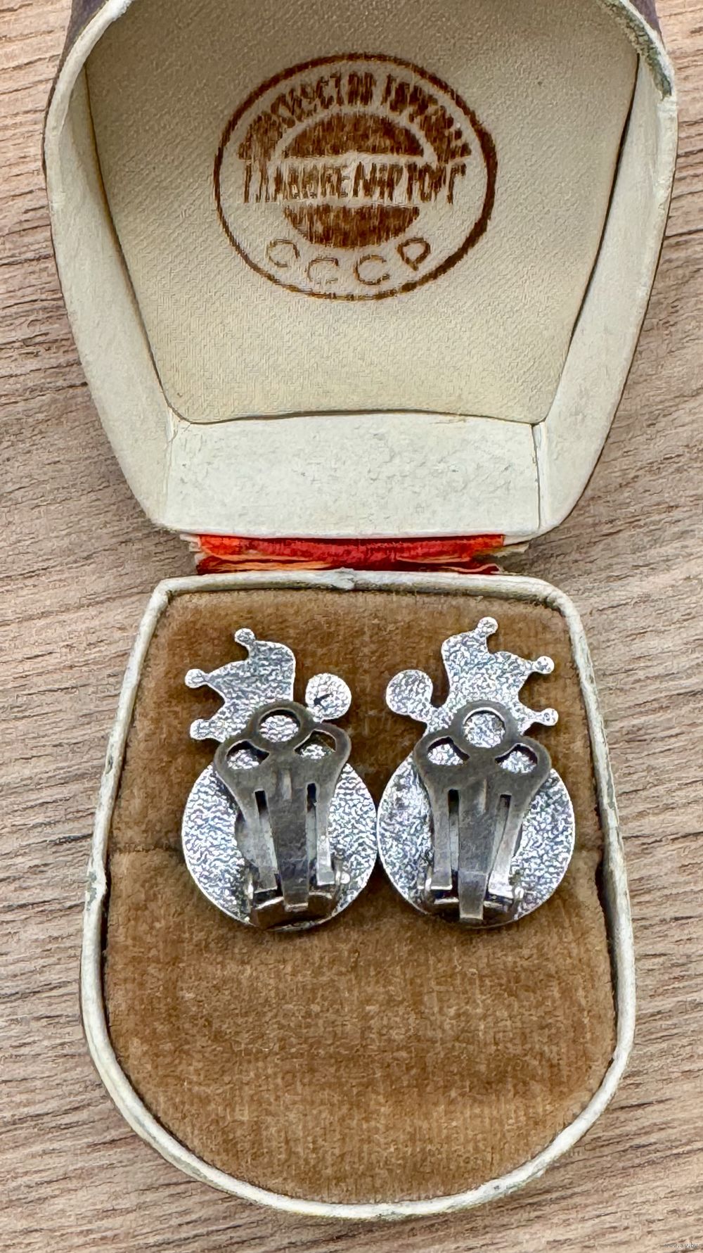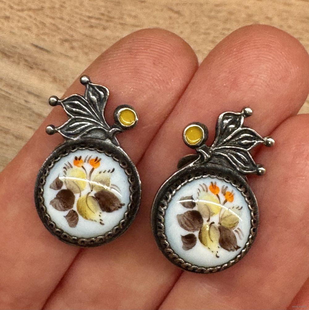 Винтажные клипсы из мельхиора и вставок финифти. Высота клипсы 2,3см., диаметр вставки 1см. Состояние хорошее.