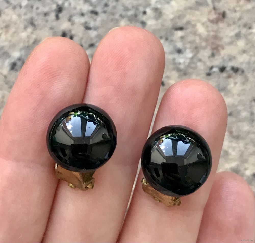Небольшие винтажные клипсы с основой из латуни и вставки из стекла чёрного цвета. Диаметр клипсы 1,3см. Состояние хорошее.