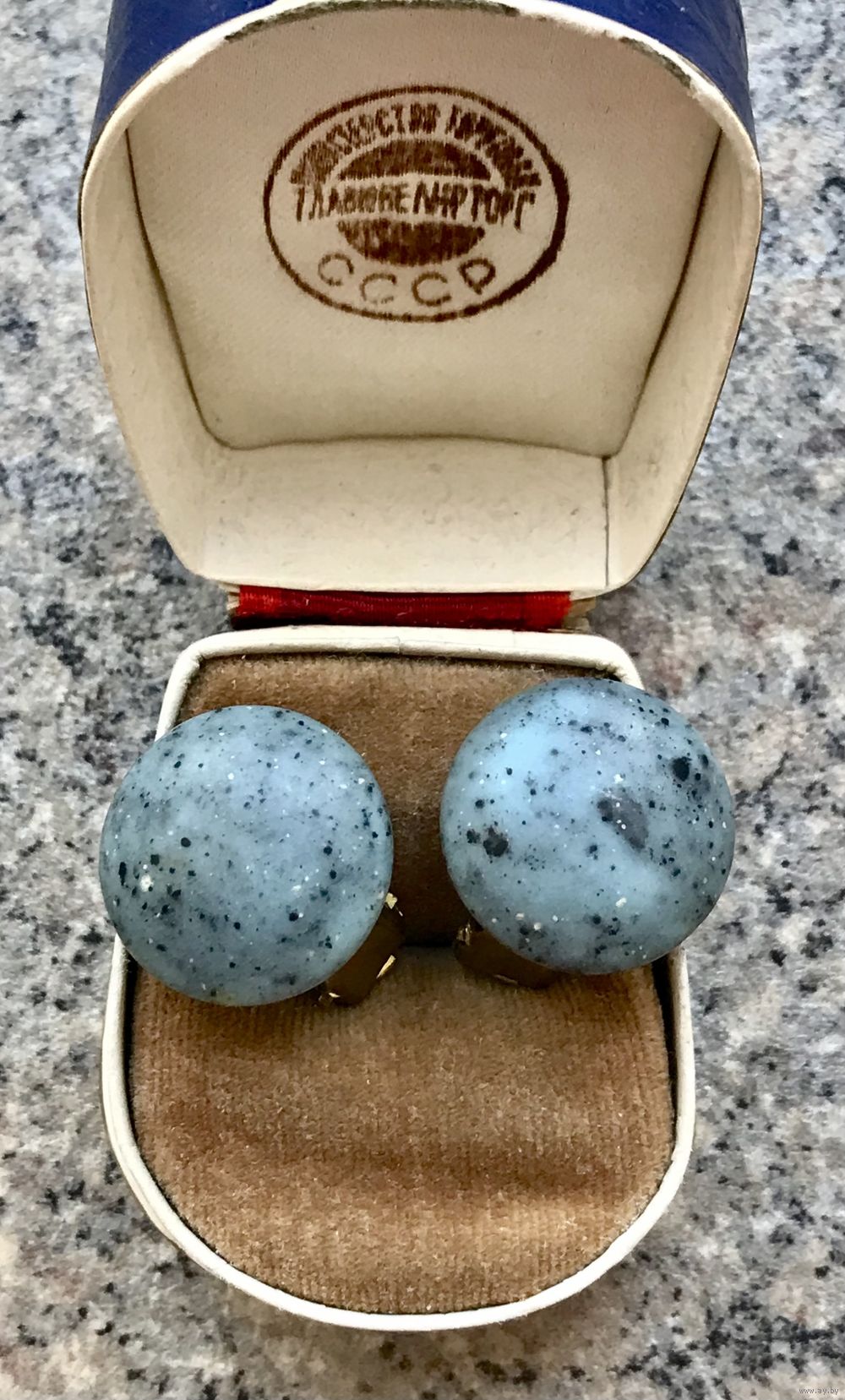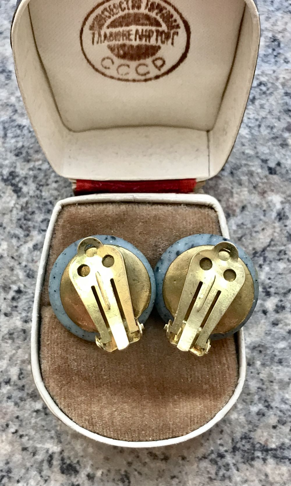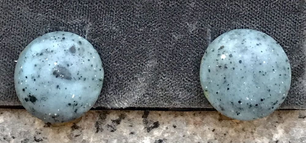Винтажные клипсы с основой из латуни и вставок из художественного стекла. Диаметр 2см., состояние хорошее.