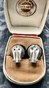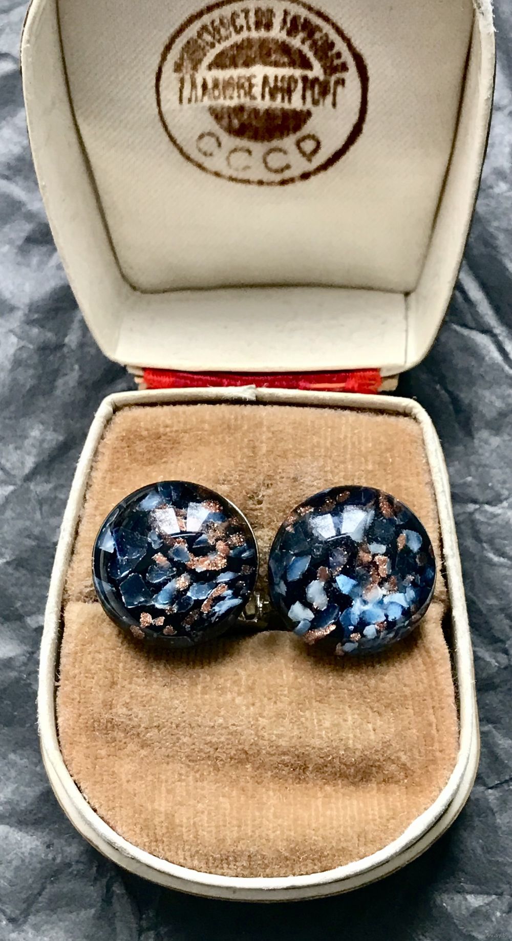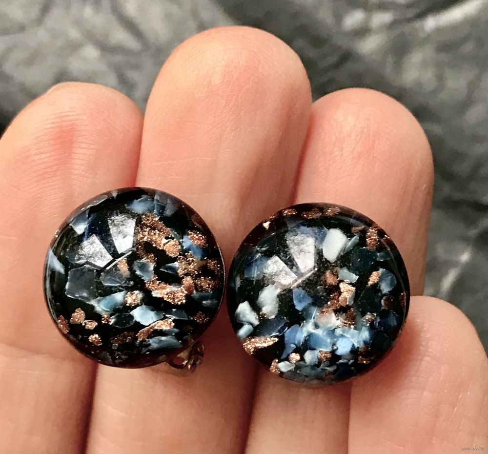 Винтажные клипсы с основой из металла серебристого тона, вставки-кабошоны из художественного стекла диаметром 1,5см. Состояние хорошее.