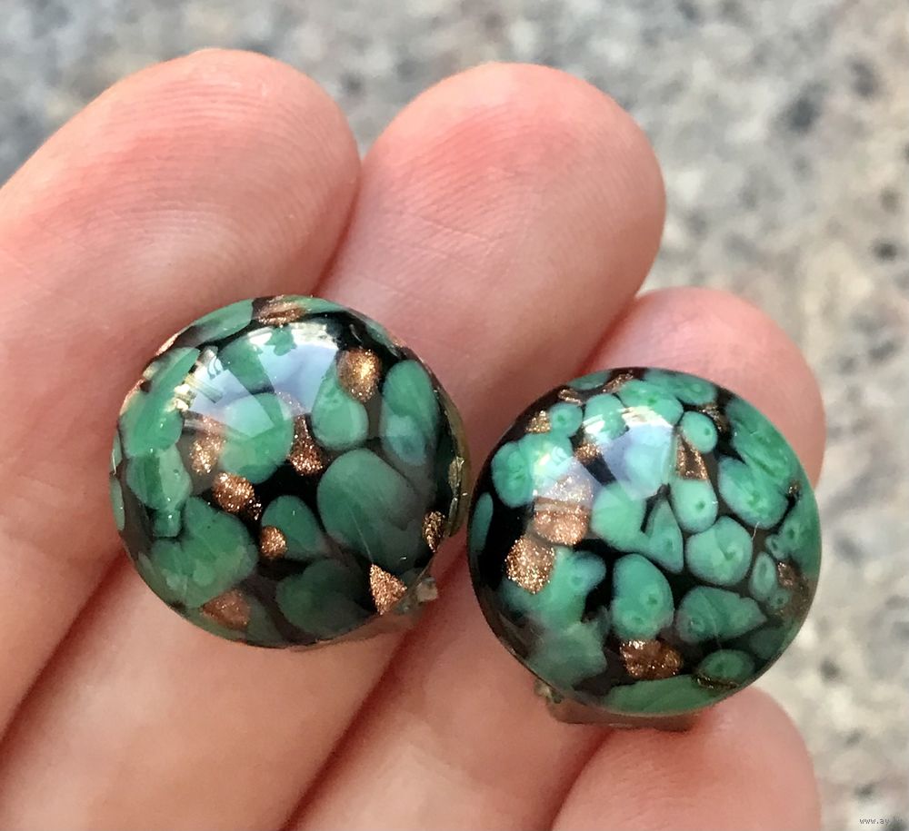 Винтажные клипсы с кабошонами из художественного стекла. Диаметр кабошона 1,6см. Застёжки держат надёжно. Состояние хорошее.