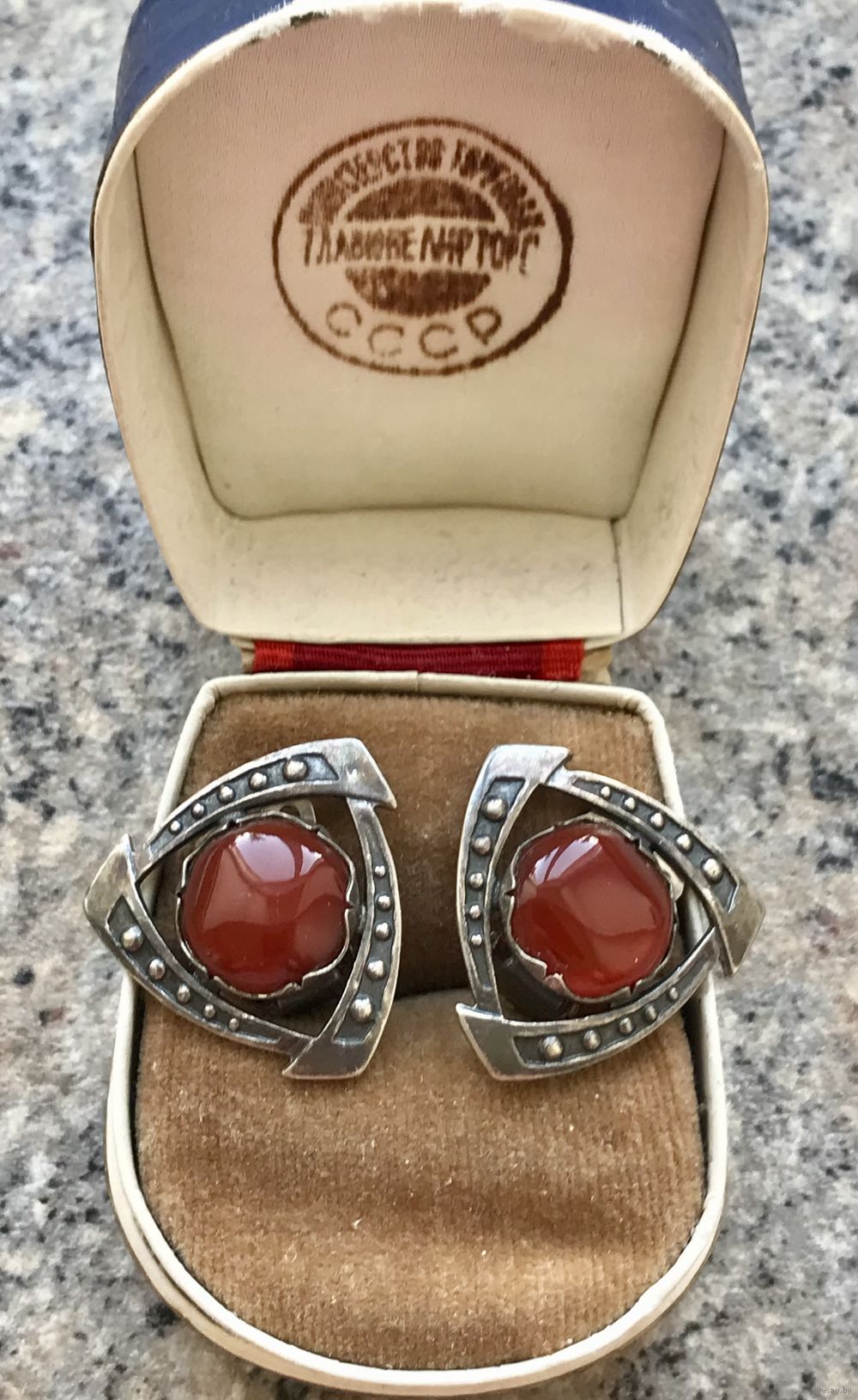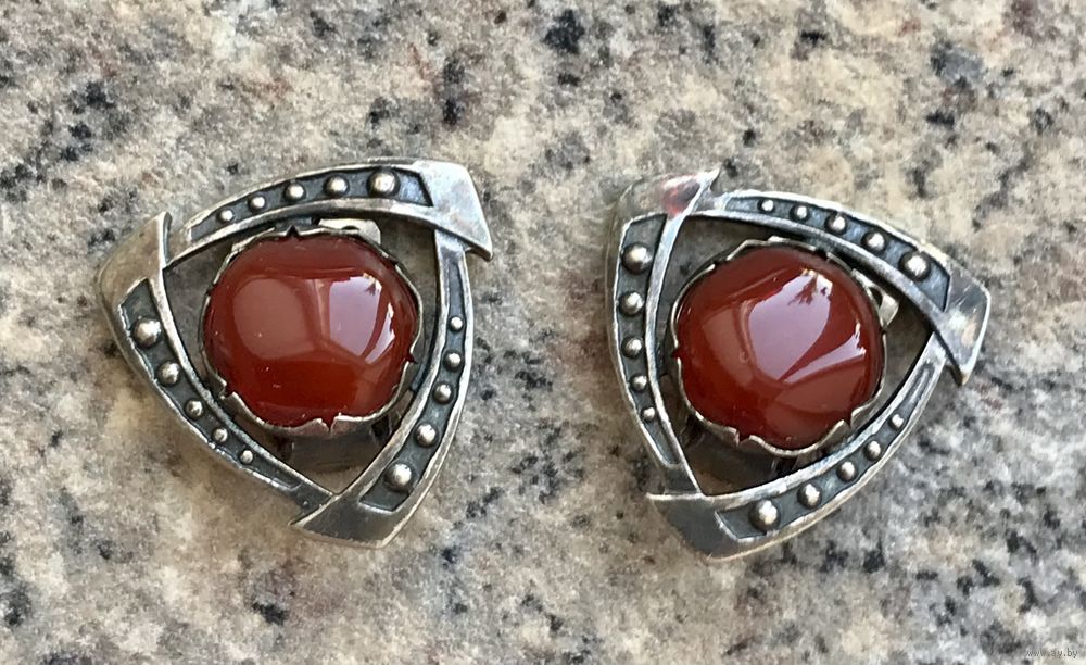 Винтажные клипсы из мельхиора с серебрением (клеймо) и вставок из худ.стекла. Высота 2см., диаметр вставки 1см. Состояние хорошее.