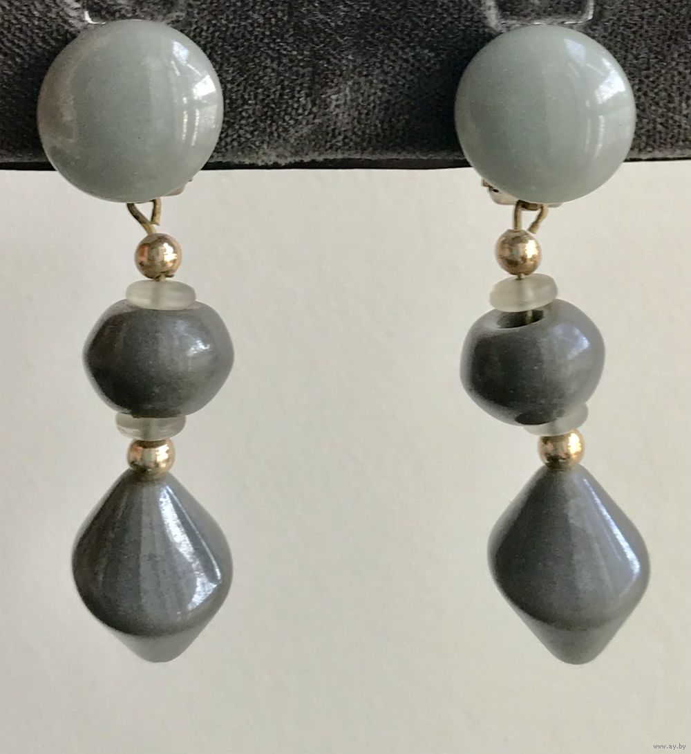 Крупные винтажные клипсы с основой из латуни и вставками из стекла. Высота 5,5см. Застёжки держат надёжно. Состояние хорошее.