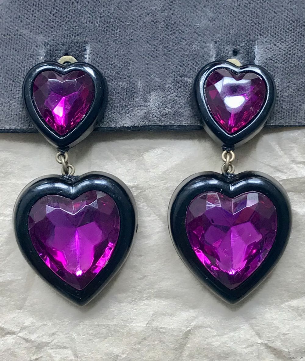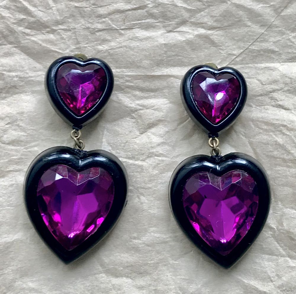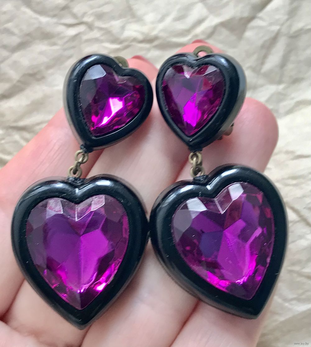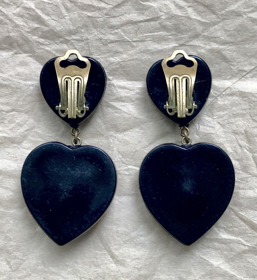 Крупные эффектные клипсы из пластика. Не тяжёлые. Высота 5,5см., размер сердечек 3х2,7см. Состояние хорошее.