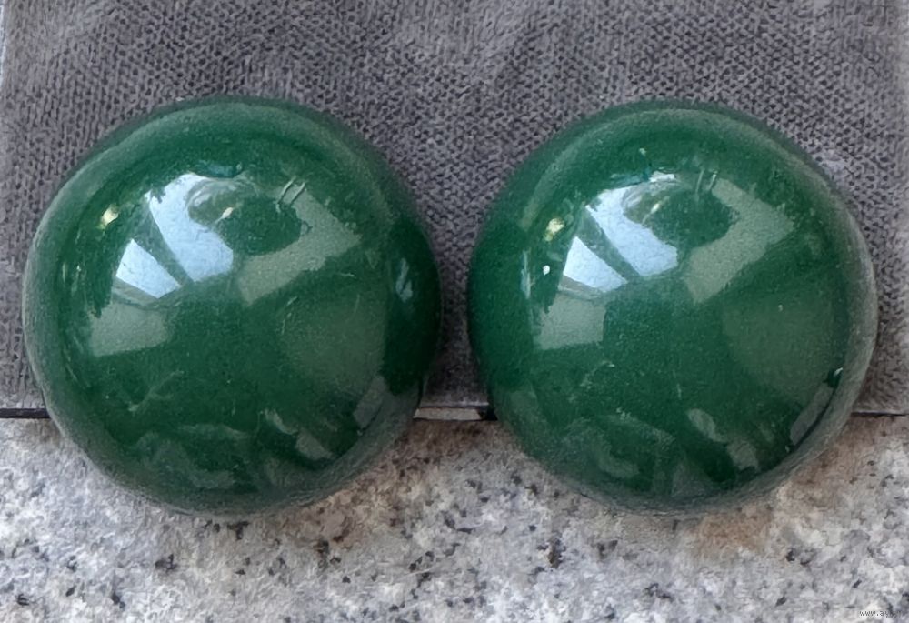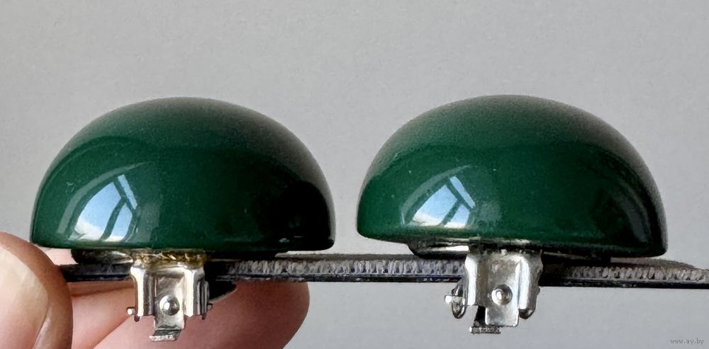 Крупные винтажные клипсы в форме полусферы из плотного пластика. Marc Labat, Франция (годы существования бренда 1986-2016). Диаметр клипсы 3,2см., высота 1,4см. На одной клипсе сохранилась наклейка с логототипом бренда. Имеются незначительные царапки, общее состояние хорошее.