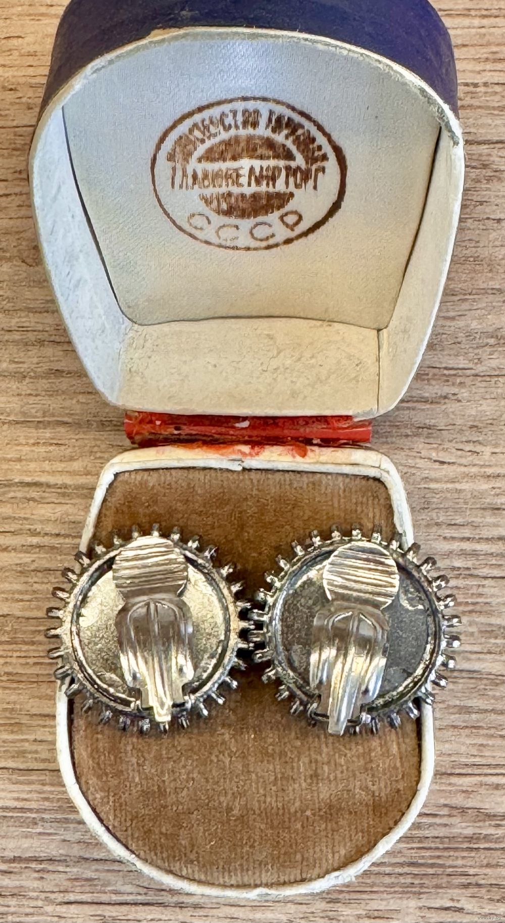 Винтажные клипсы из металла серебристого тона, лицевая сторона украшена вставкой из перламутра. Диаметр клипсы 2,2см., диаметр вставки 1,5см. Состояние хорошее.